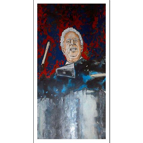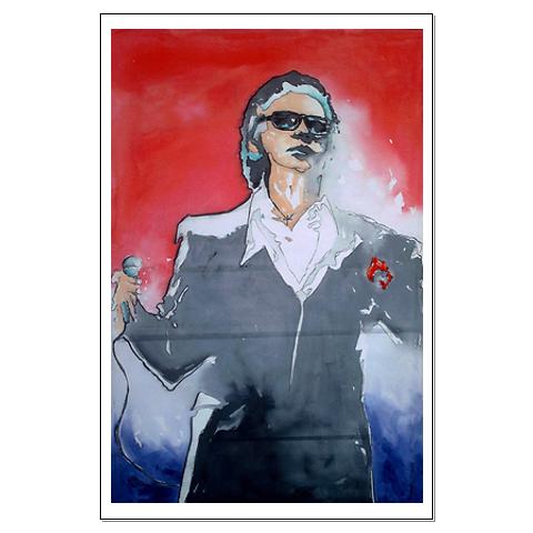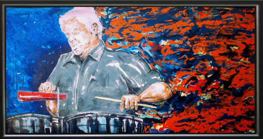 HE HA PRINTS, AT A VERY AFFORDABLE PRICE, TO BE USED AS ROOM DECORATION, OR YOU CAN HAVE HIM DO A CUSTOM PAINTING OF A SPECIFIC, CONGERO, OR MUSICIAN.