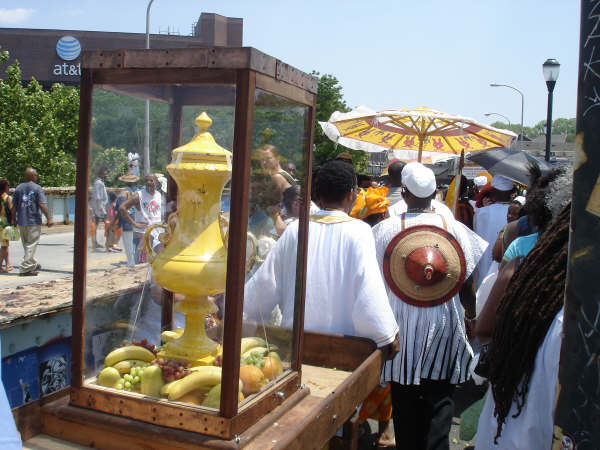 Everyone is invited to participate in the revered processional to the river. The offerings to OSHUN is one of the sacred aspects of ODUNDE, During the processional to the river praise is given to all orishas, in the Yoruba language, especially to OSHUN.