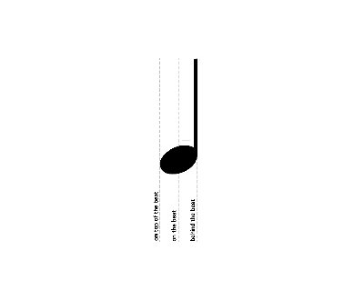 After about the third rehearsal it was clear to him that I did not understand what he was talking about. So he pulled me aside to the blackboard and drew a series of quarter notes on the musical staff. He then drew a line down from end of the ball of the note and said " this is where you are playing". That he said was behind the beat. He drew another line down from the middle of the note and said "that was on the beat". He then drew a line at the very beginning of the quarter note and said " that was on top of the beat. That there existed these three gradations in time keeping was a real revelation to me. I went back to the practice hall and tried to hear these with a metronome. What I then learned was that when you are truly hitting on top of the beat the click of the metronome can not be heard if the click is not too loud. Over time I was able to master not just playing on top of the beat but on the beat and behind the beat at any given tempo.