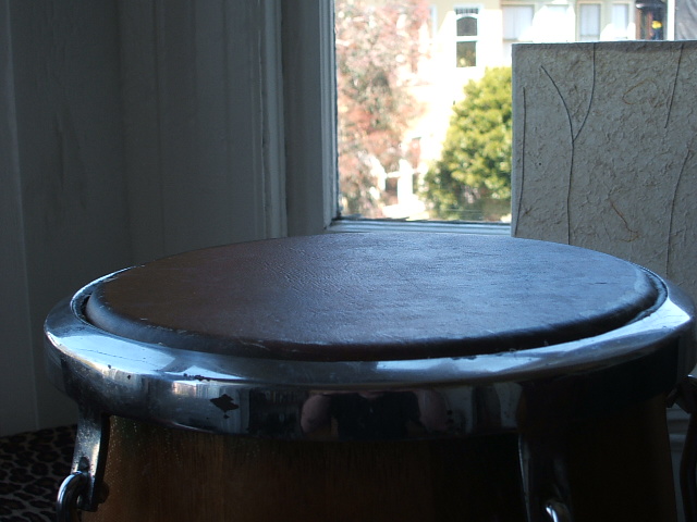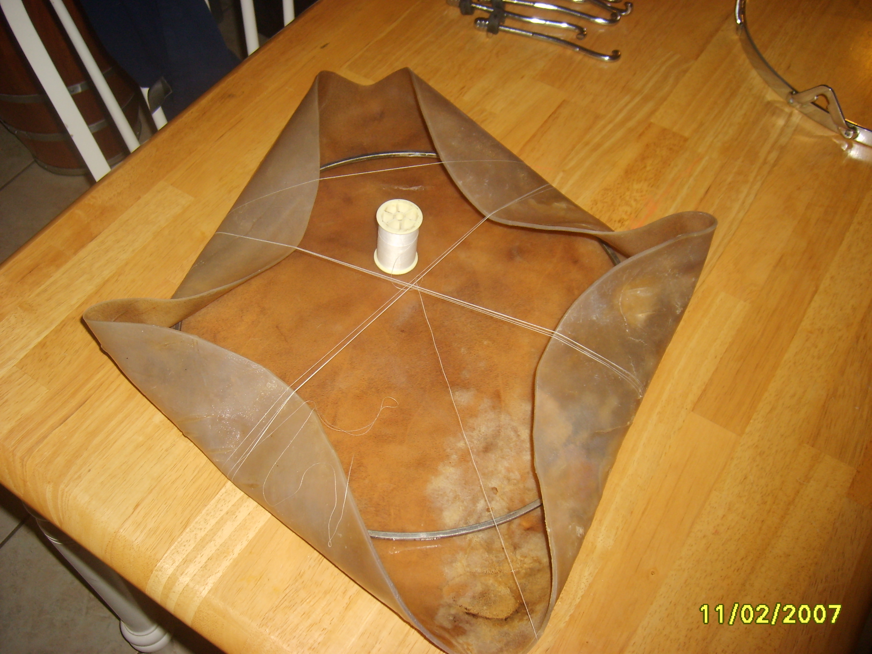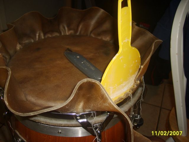 Then of course, if this doesn't sound like something you would try doing, there's always remounting the heads (soaking them in warm water for an hour or two), making sure that the flesh hoop doesn't fall out, then remounting them and tightening them to the point that you are content. Or.......you could just start from scratch......(see pics)