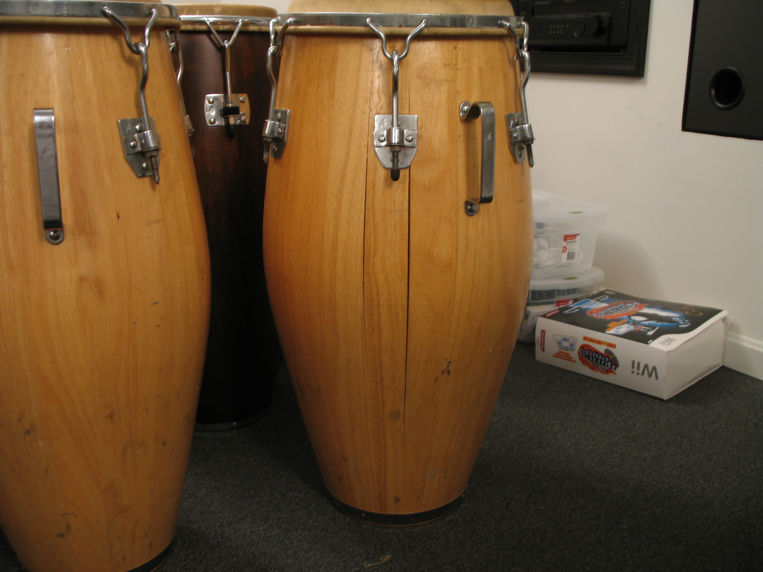 Inside: Is that white glue between the staves? Akbar used a clearish/brownish glue. Also, Tom Flores and Akbar cut a series of grooves in the inside of the shells, about a halfway up that I don't think LP did - look at pics. Also, Tom or Akbar didn't write anything (like a date) inside the drums.