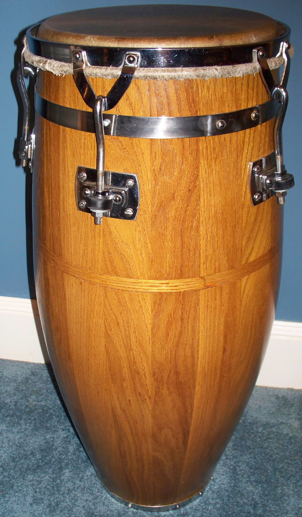 The bottom opening of the drum is sometimes larger than than the one at the top.