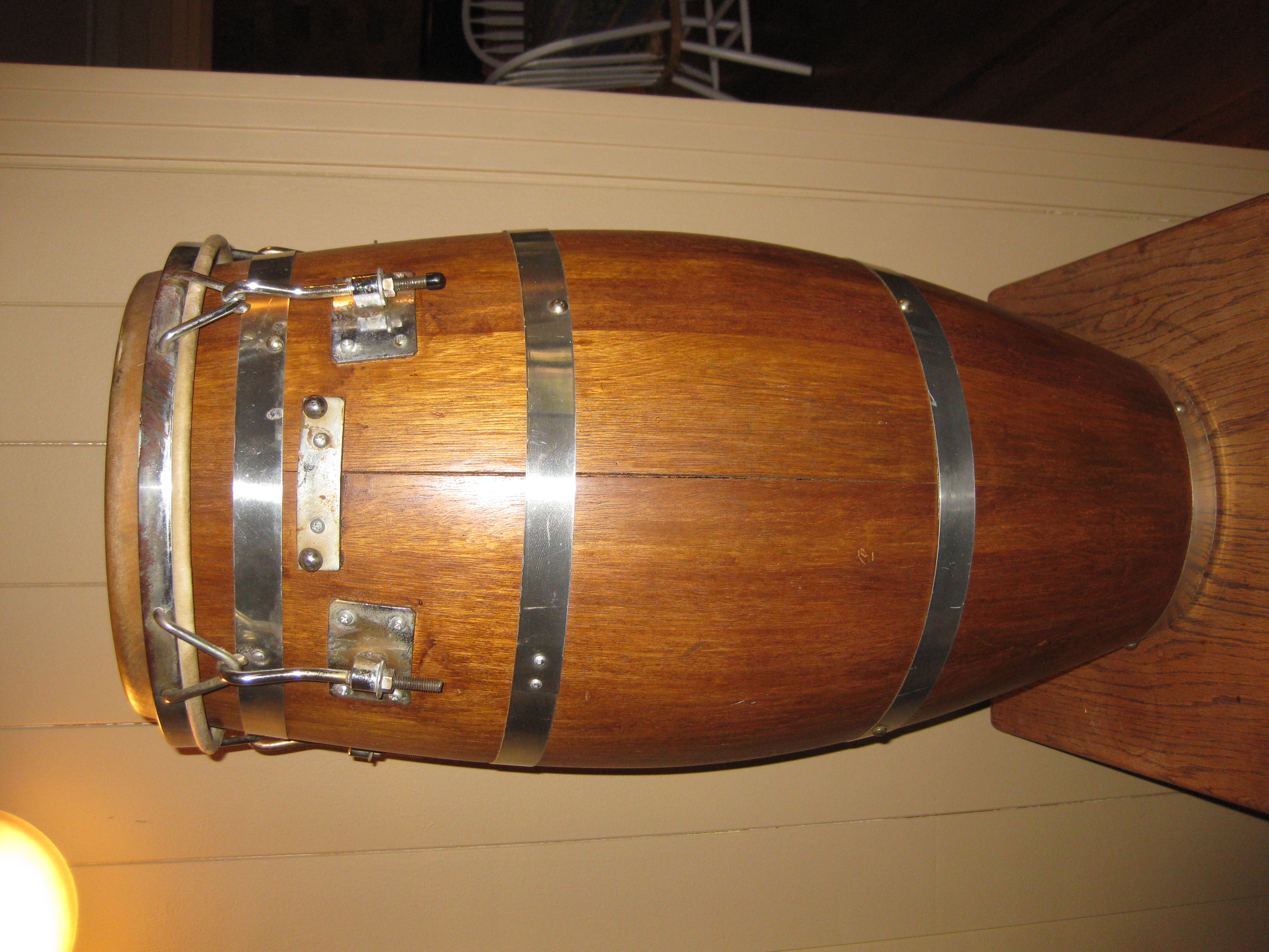 Here is a photo of an early 70's huge Gon Bops tumba that I refurbished. It was painted black with superficial scratches and it had a couple of splits at the bottom. Repaired the splits with TiteBond 3 glue, the one that Matthew recommends, and sanded it down and applied 3 coats of varnish. Hope you enjoy.