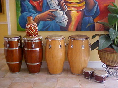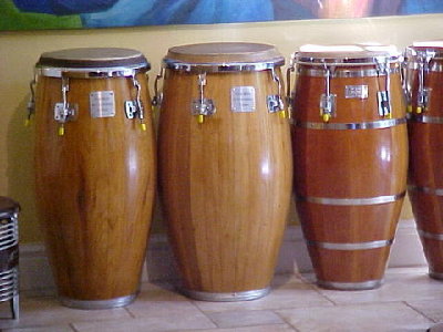 I have had through the years both Valje congas and bongos and Gon Bops congas and bongos. Valje congas always sounded better than did Gon Bops. Gon Bops bongos sound real good as does Valje. Recentlly I got a set of vintage Valje from Lou Vega and they sound awesome. I also got me a set of vintage early 70's Gon Bops congas, I got the super tumba, the quinto and conga are in transit. Here are photos of my California collection through the years and present day.