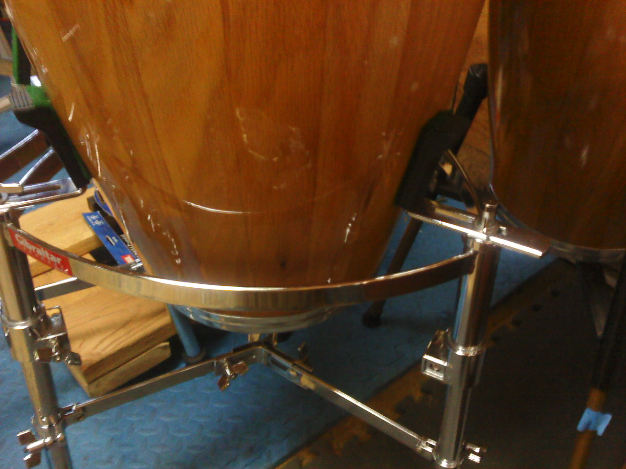 Well yesterday we had our Labor day party bbq rehearsal in my back yard. So i just got done refurbishing my old Gon Bop's and decided to use the Gibraltar stand's. I had some friend's play on them while i was going around greeting friend's and guest . When i came back to play i notice the conga sank down in the basket and was rubbing on the metal stand and scratch the new finish i put on. Now these are my new gig congas cause i knew they would get a little scratch but not that much. I'm glad i didnt bust out the Junior's cause i know would have been pissed if that would of happen to them. Yes i can refinished them. I didn't realize that the wing nut's had a bolt on it so you can tighten them with the same wrench that you use on the conga's. One thing for sure the conga player's like the Gon Bop's with that Bill Confer head's but i wont take out those Junior's cause i don't think they will get respected.