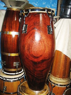 As stated I was not sure about the hooks, they sort of reminded me of a Valje designed crown which was used on the bongos for a couple of models those had wielded lugs on the crown. I like solid shell drums I have one that was made in Barranquila Colombia in 1966. Not lots of volume or projection but great sound for Bembes and Toques. Different in shape from the Mambiza drums but same concept just older in origins. Theres a thread here on Congaplace on how I found it and the restoration. Shell is Colombian, Crown is Gon Bops, side plates are SOS, hooks JCR = one sweet looking and sounding drum if I do say so myself.