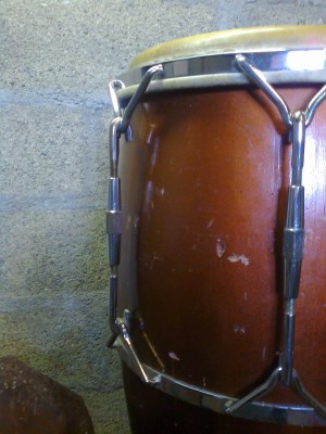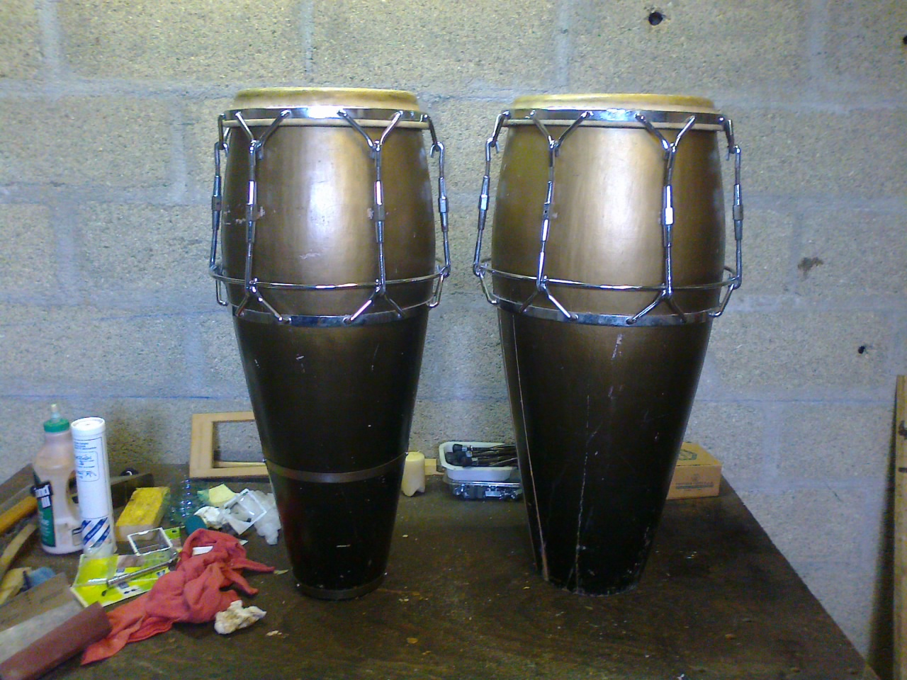 The bongoes are solid shell, one piece of kind of Mahogany.