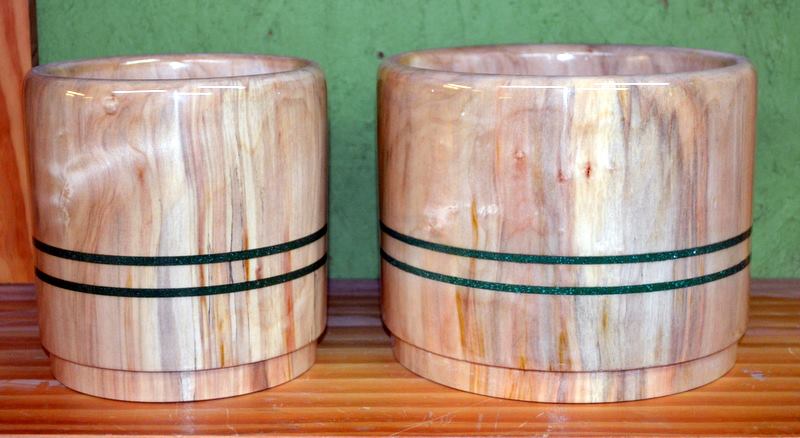 Spalted Silver Maple with Malachite stone bands — at Manito Percussion.