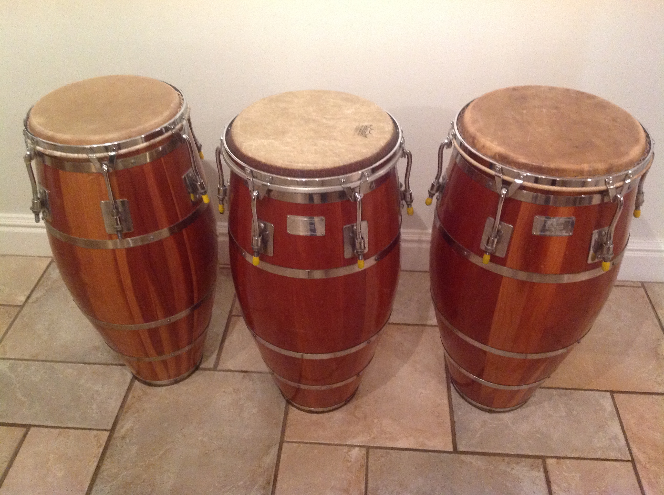 I bought the quinto myself from Jay in the mid 1990's. I bought the tumba and conga this summer from a guy in the Bronx. I know they are oak and dated 1987 but I'm not sure what wood the quinto is. Does anyone know. I think it might be cherry.