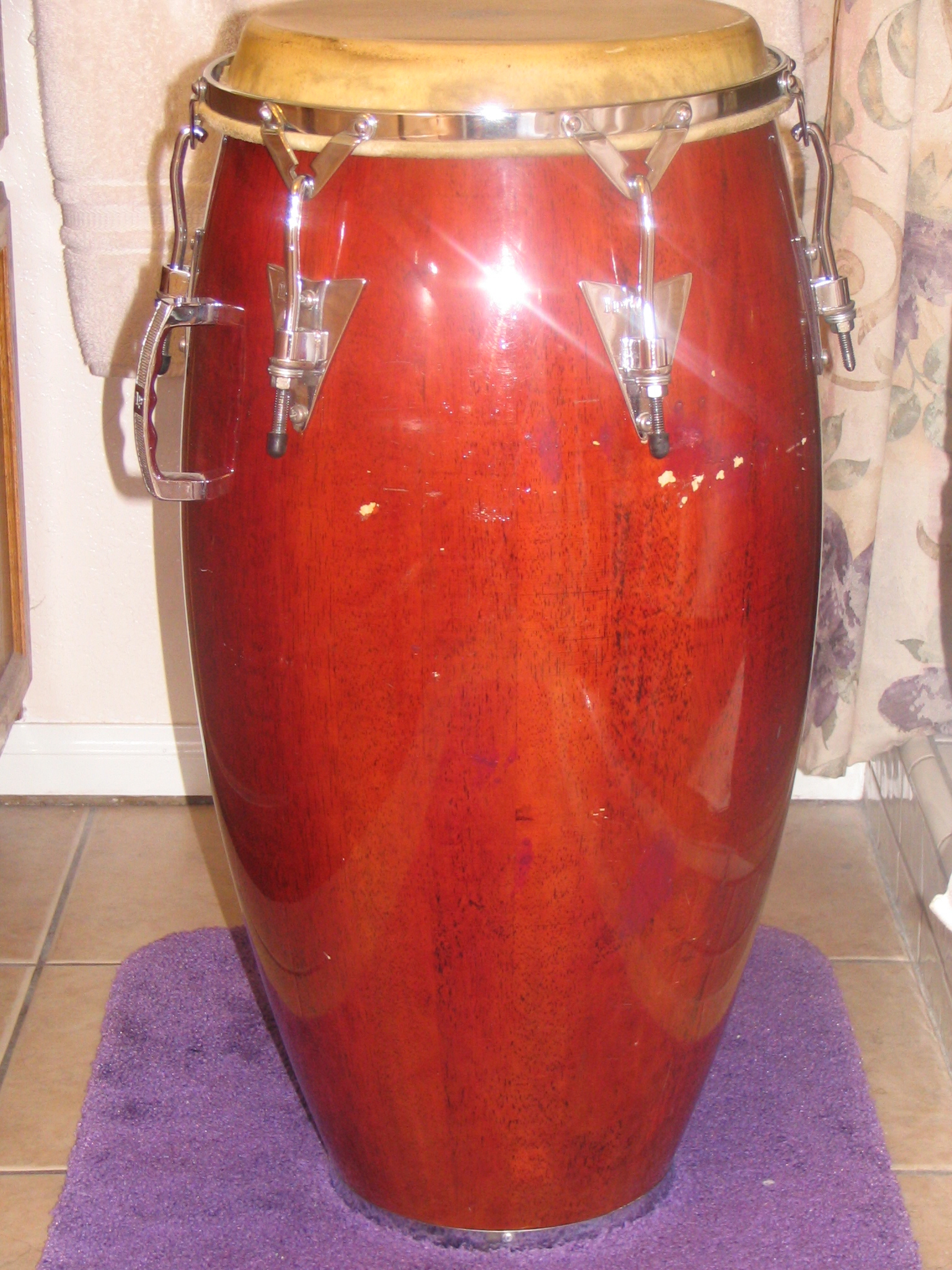 Yeah, the rim was poorly mounted. That is the way it was when I bought it off my friend. Its an early 80's LP drum.. As soon as i got it, I got rid of the old dead skin & put on a Remo Fiberskyn3 on it & man what a difference! It came to life. The tone on this bad boy is too good! And I made sure the rim evened out as I tightned down on the drum.