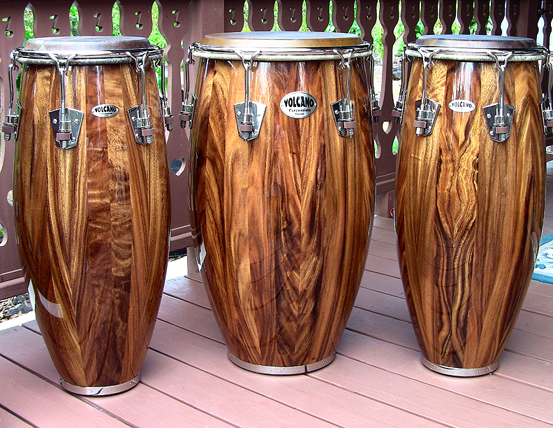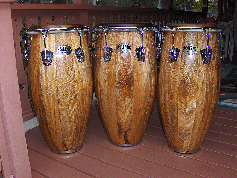 To all that appreciate Volcano Percussion Congas, Here is a new set of Monkeypod congas 14" Monkeypod Boomba. 9.75" Super Requinto with a 10.25" Requinto