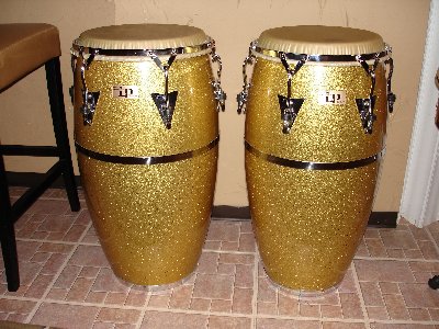 Gallichio wrote:Here are my Vintage LP Palisades Park Congas. Very light weight and sound great. They are in mint condition. I enjoy them. Photo was taken with flash, this is how they look under stage lighting.
