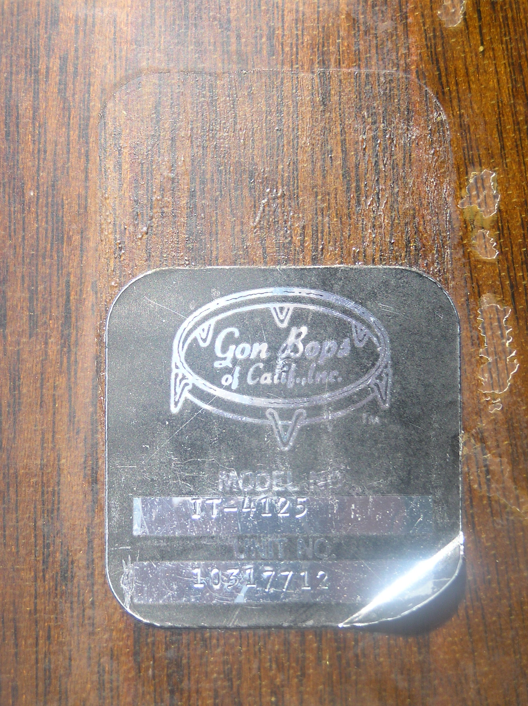Second photo shows Gon Bops sticker which has apparently been moved.