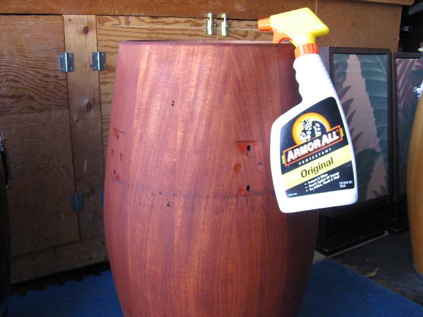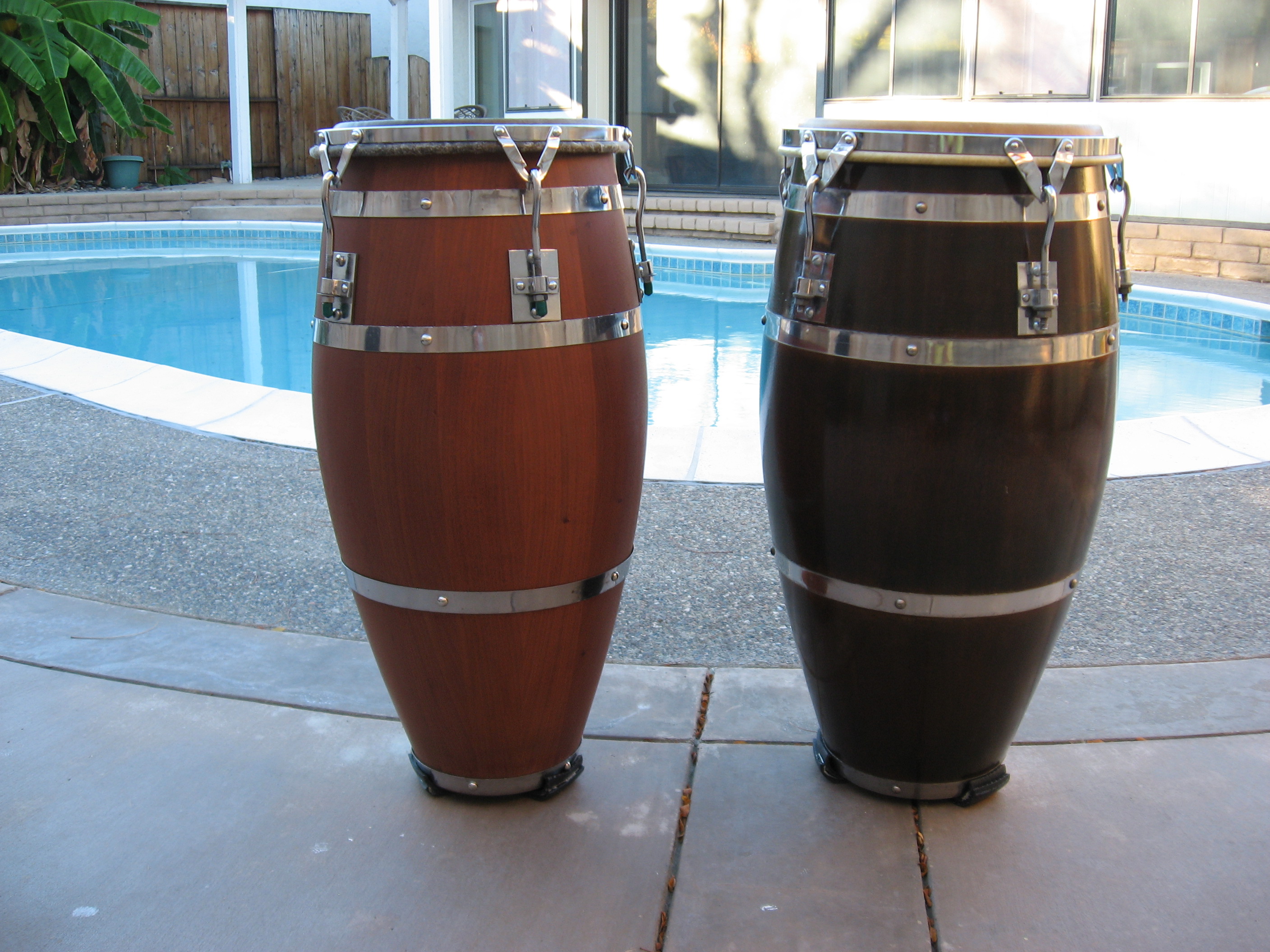Alright guy's been busy. I did the conga, not with Watco, buff it out with a 1600 rpm buffer. But first i sanded it down, put a coat of Amorall on it to bring out the color and then buffed it out. It flat in color but look's great but i still wonder if i should Watco it. The tumba was stained by me in 1983 and i applied a poly finish on it. It wasn't a great job and i had to put some wood putty on it to cover the gouges. I would like to sand it down and match the conga but it might not look like the conga but i gotta try cause the conga looks great for being almost 30 year's old