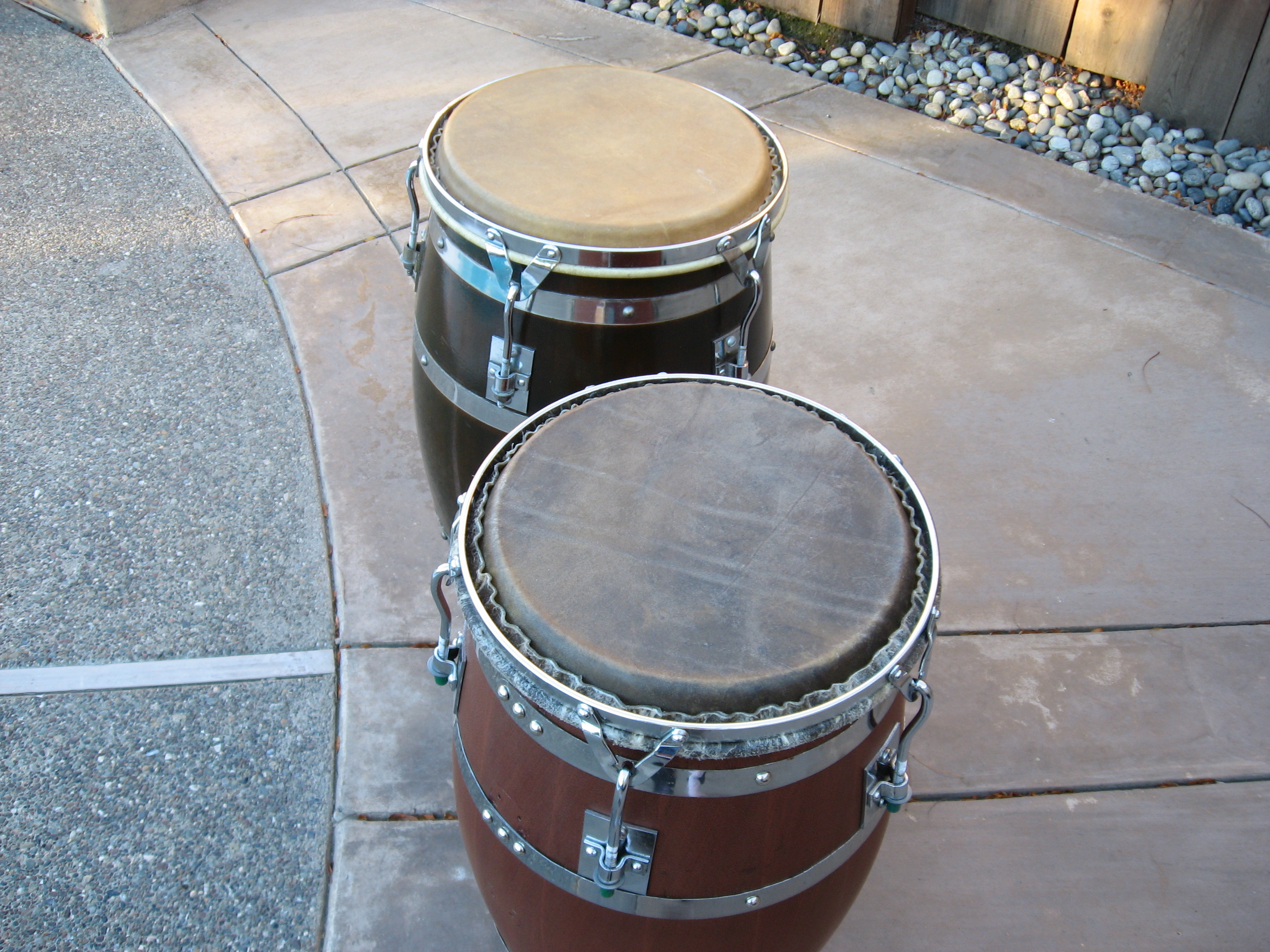 Hey King: There both Junior congas early 80's. I guess back then he change the rim style. The skin on the conga is from Matt Ritmo conga's I brought 3 skin's from him. One is on my Gon Bop quinto already Looking to make some nice handles for the conga's (Those garage door handle's gotta go) They sound great the skin's just make those conga's sing.