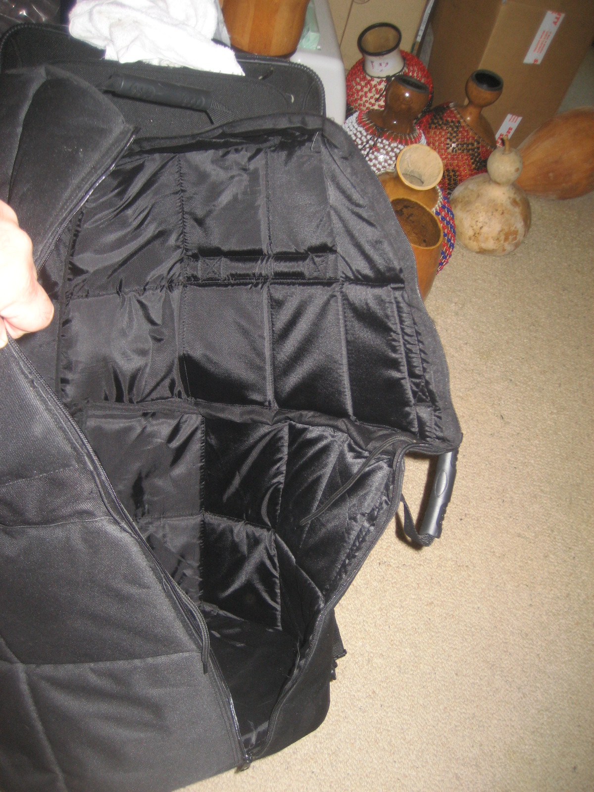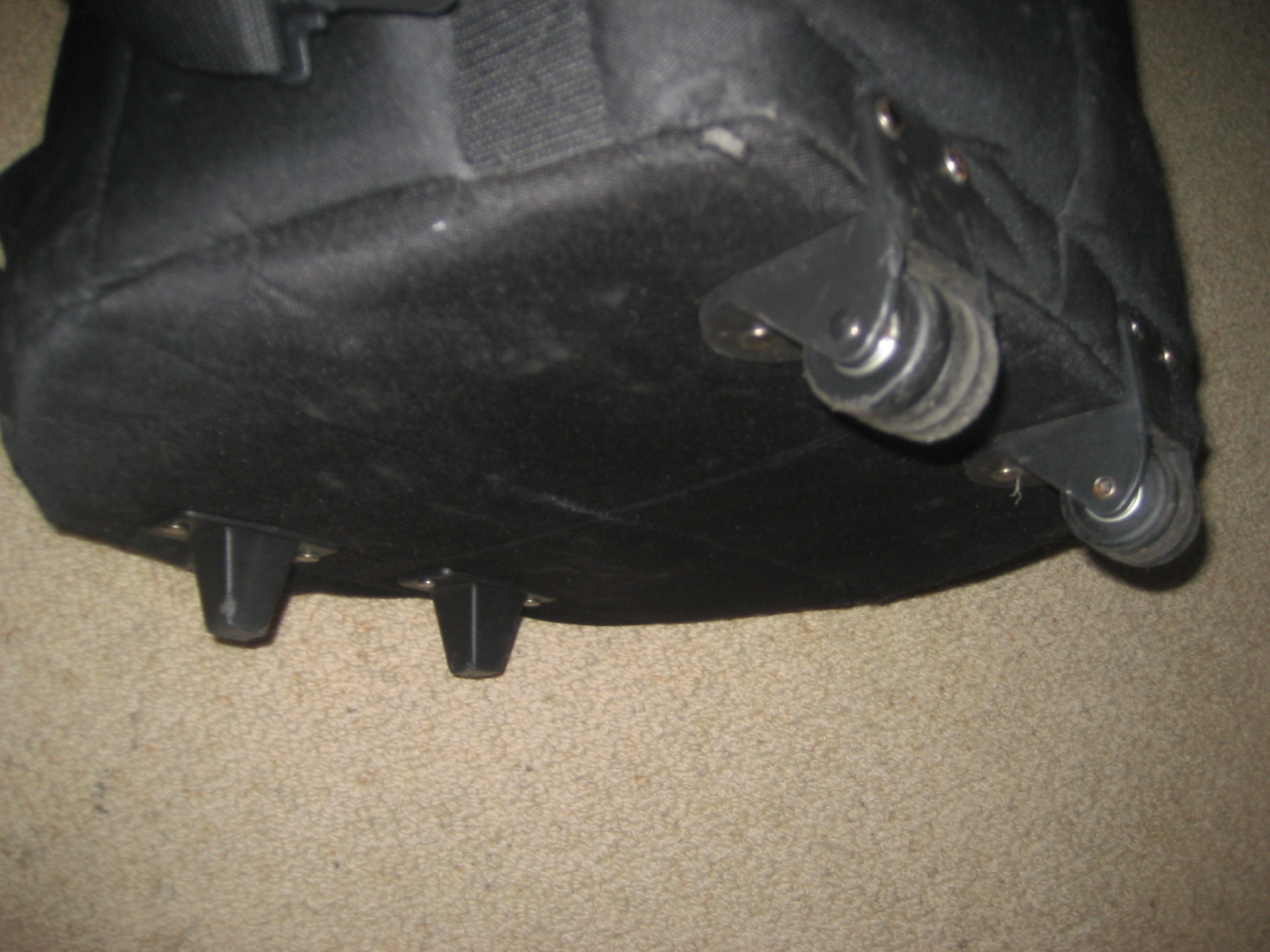 Here are some pics of my other heavy duty padded case. Great bag also. The base is padded on the interior also as this is where the head of the conga is designed to go, and the base is solid, so there is no bending etc under the weight of the drum, wheels and brackets are welded onto this solid base. Pics below!
