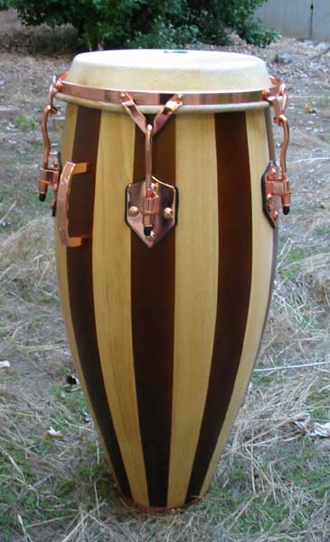 In case this thread was generating any interest in these drums, I included a photo showing the thickness of the tumba head. I also included a photo of the quinto in natural, indirect sunlight to give another impression of the hardware color.