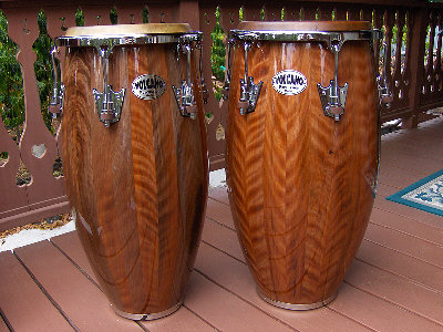They were separate deals, ...the Afro-Cuban conga-looking drum on left I acquired from our own forum member Izzy, a great cat to deal with. It's wood, 1 piece. Tone between a conga and djembe, depending on weather, me, and the drum!