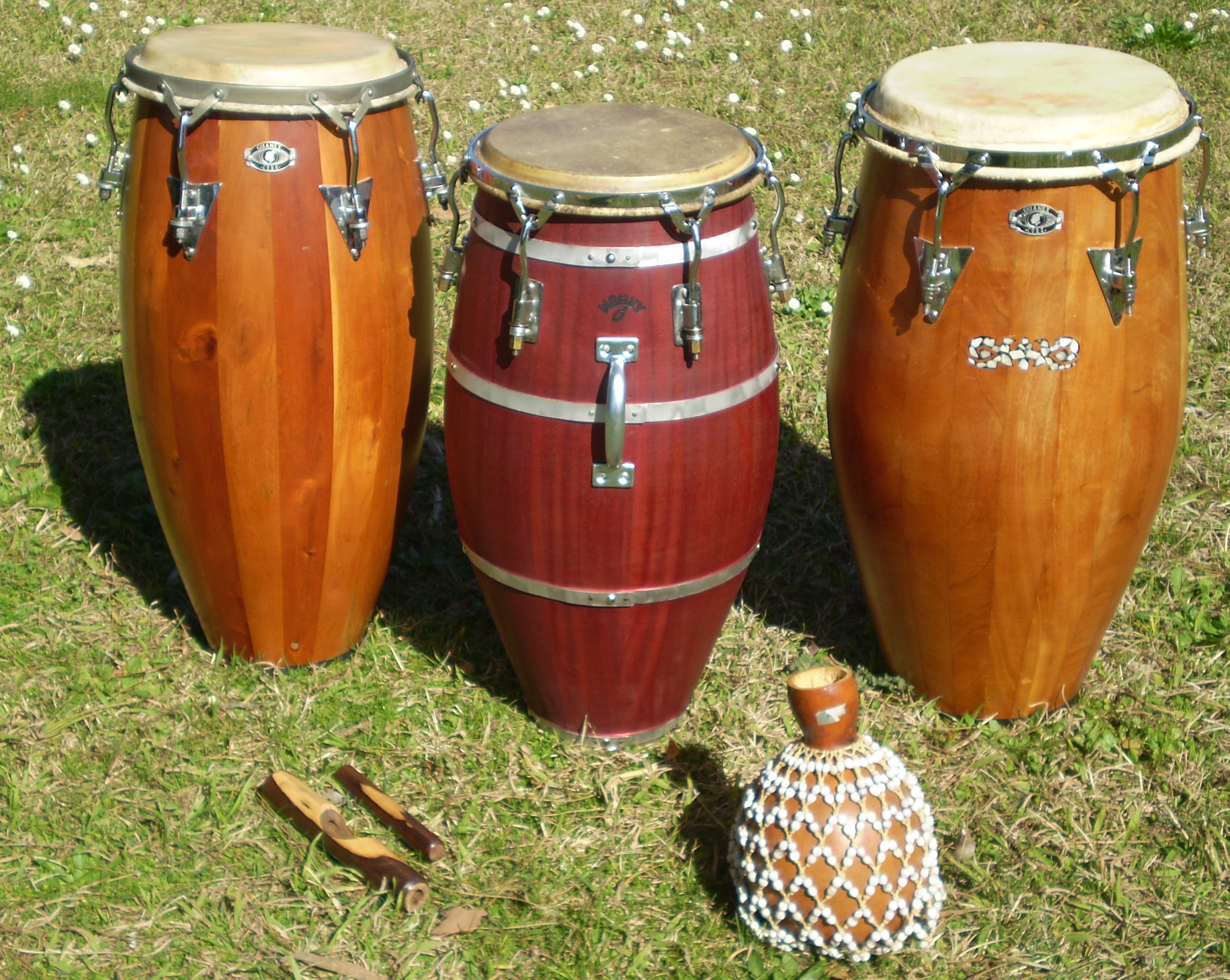 harpon wrote:New to congas and drumming.Just posting our newly refurbished Gon Bops...... This was a Dad and Son project. Of course Son got the set with the bands!! Thick cow and bullhide skins......mmmmmmm tone to da bone!!