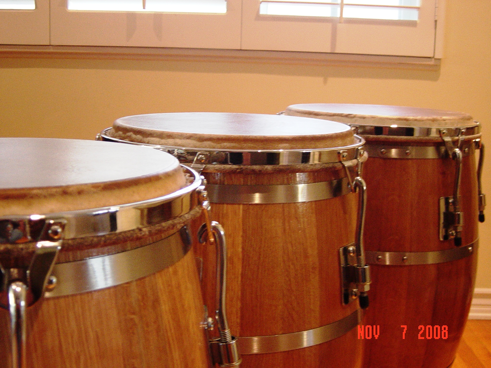 I believe the difference comes from the fact that I have hardwood floors throughout the my house, this produce’s an echo sound affect, what doesn’t help is the drum’s being very to close to the wall, at church it's very open and the drums are on Gibraltar floor stands which rest on carpet and like I mentioned, in this setting the sound is incredibly good. This is the case with my other set of Congas, at home they sound just a little ringi, echoi, for lack of better word, but they sound great in the open. Hope that helps.