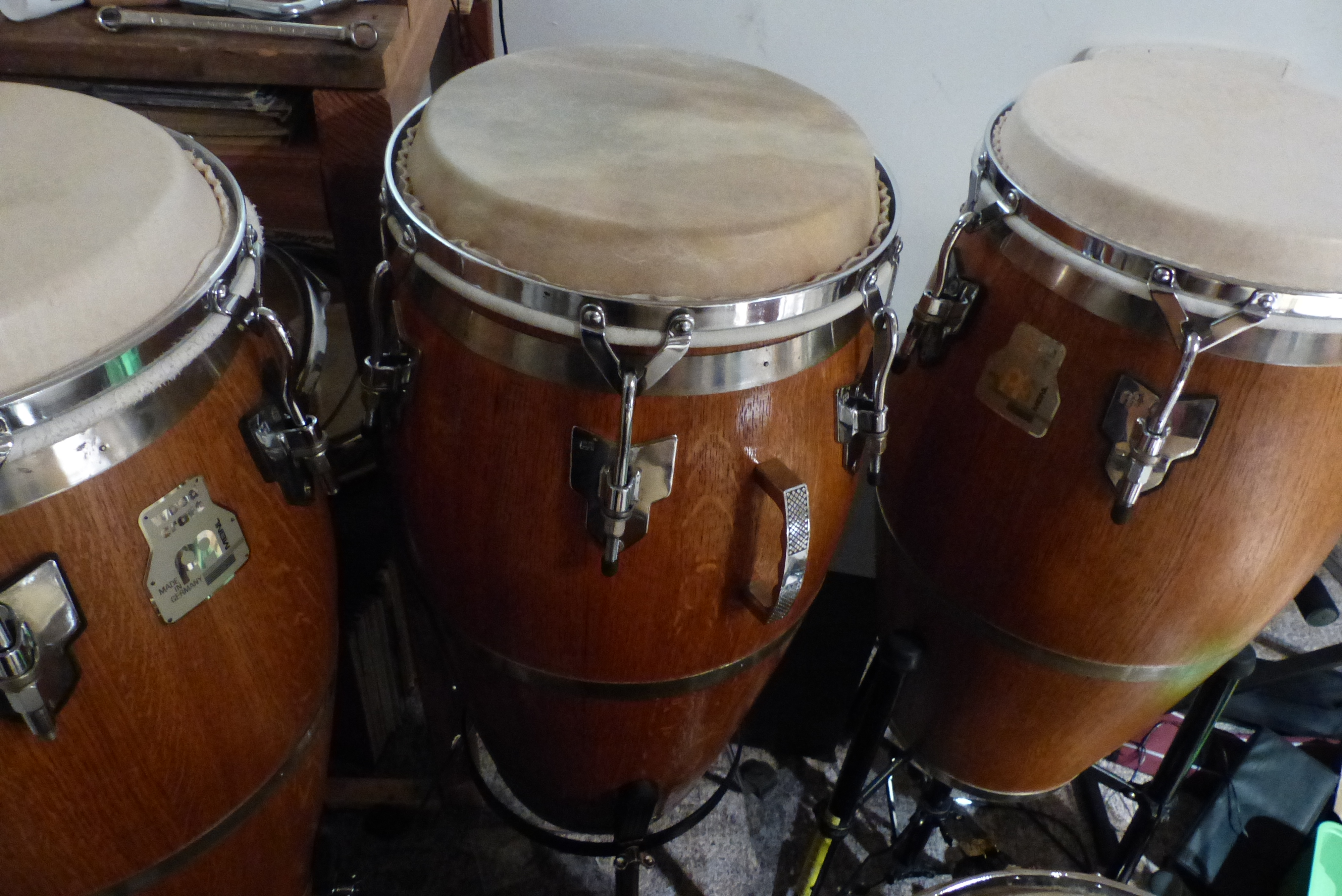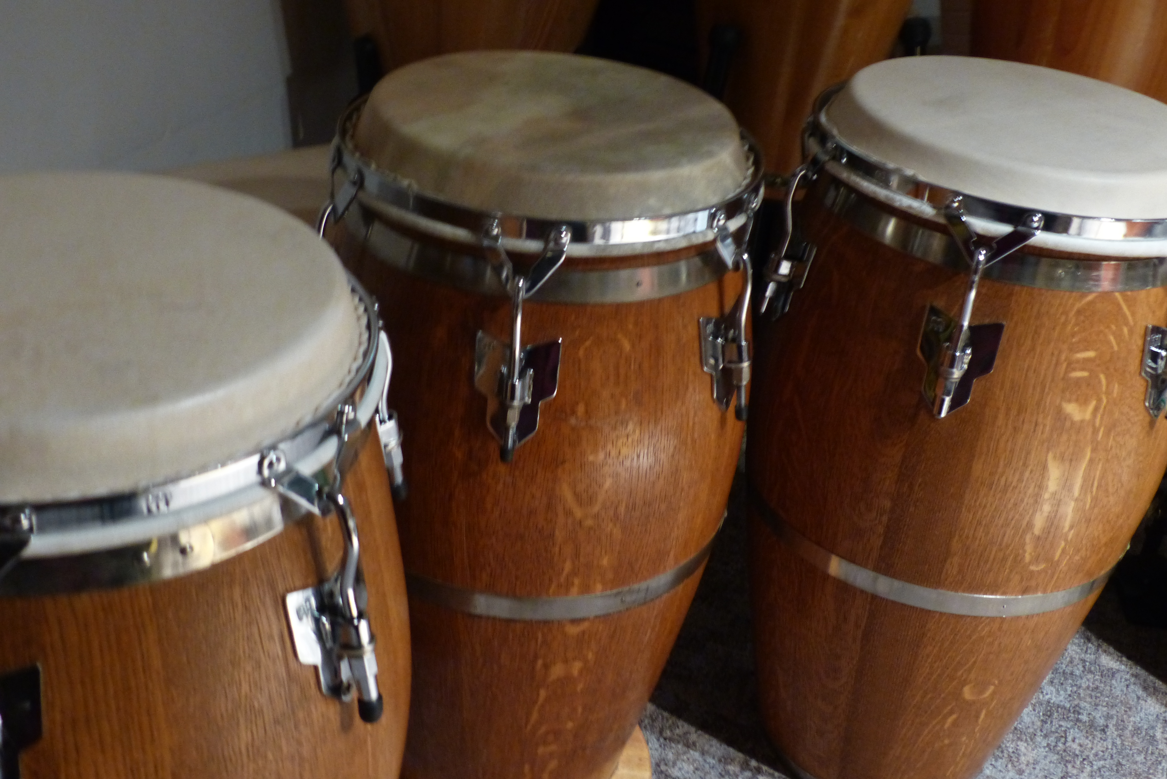In the moment I have only the set, which Kai gave me for the Friends´Area. I fetched it in 2009. This - quinto, conga, tumba - will return to him, because the conditions here in Kiel have generally changed. A few years ago I visited Kai in order to build a tumba with his help. It is just of same appearance and quality as normal M&S congas. I just choosed the thickest skin Kai had at that time.