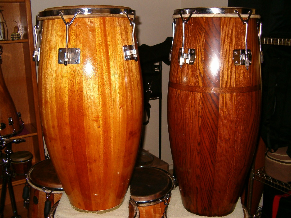 maSSivdrums wrote:Attached is a pic of my Gon Bop Tumba and Conga I refinished using hand rubbed oil. The Tumba is a Luan Mahogany and the Conga is Oak. I used a product called Gun Stock Oil made by Birchwood Casey Co. which contains linseed oil combined with other products. The Tumba has 21 hand rubbed coats and the Conga has 17. In between coats I used 0000 steel wool to blend out any inperfections. On the Conga I used a walnut stain prior to the oil coats giving it a dark color.