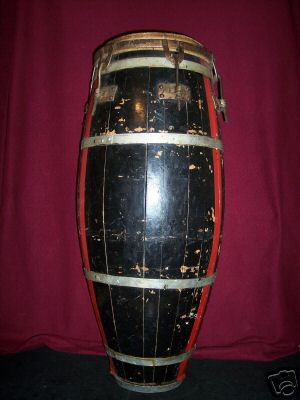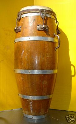 Here a some other photos of likely Requena congas. Mine was a wreck when I got it: splits all over - almost fell apart when I took the head and bands off, hardware completely rusted over, etc. Took a lot of work to get it into good playing condition.