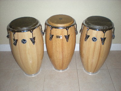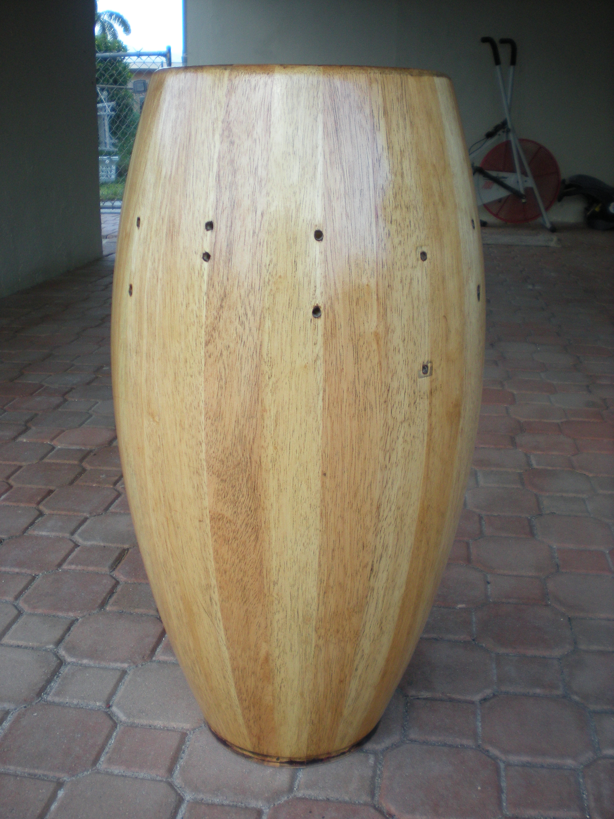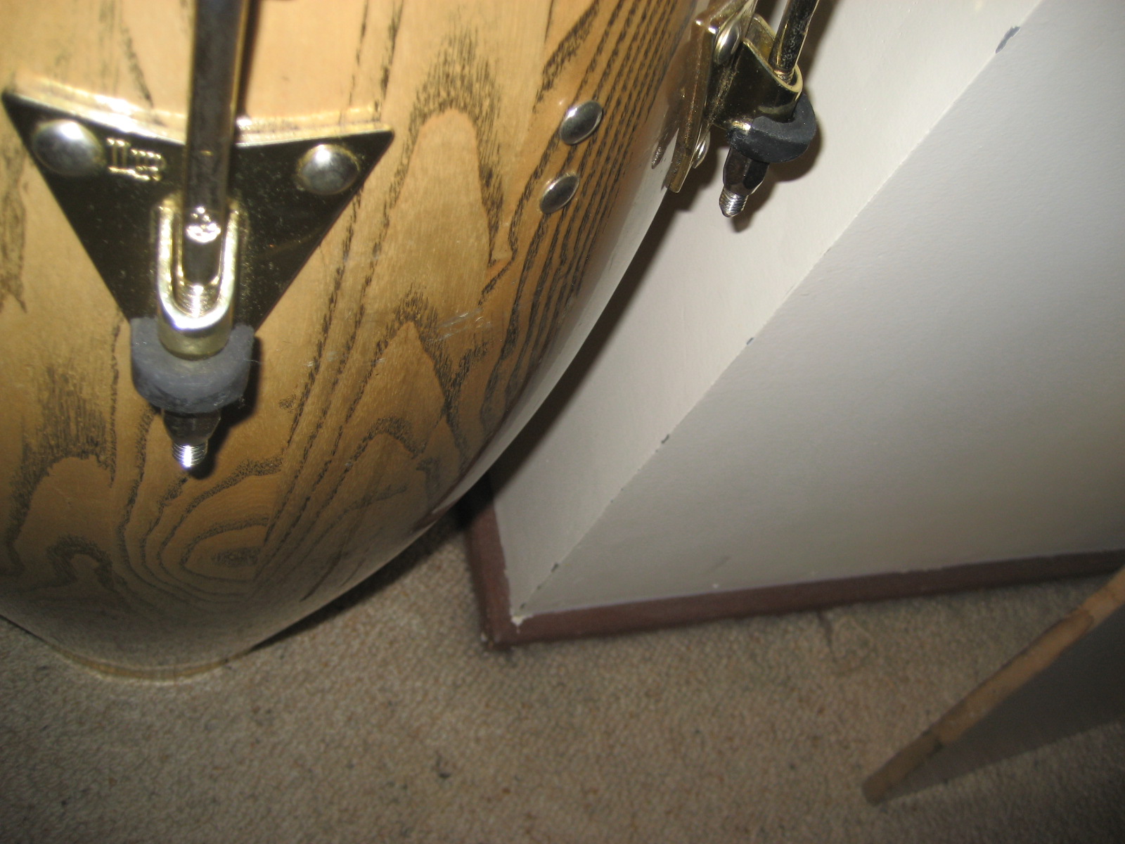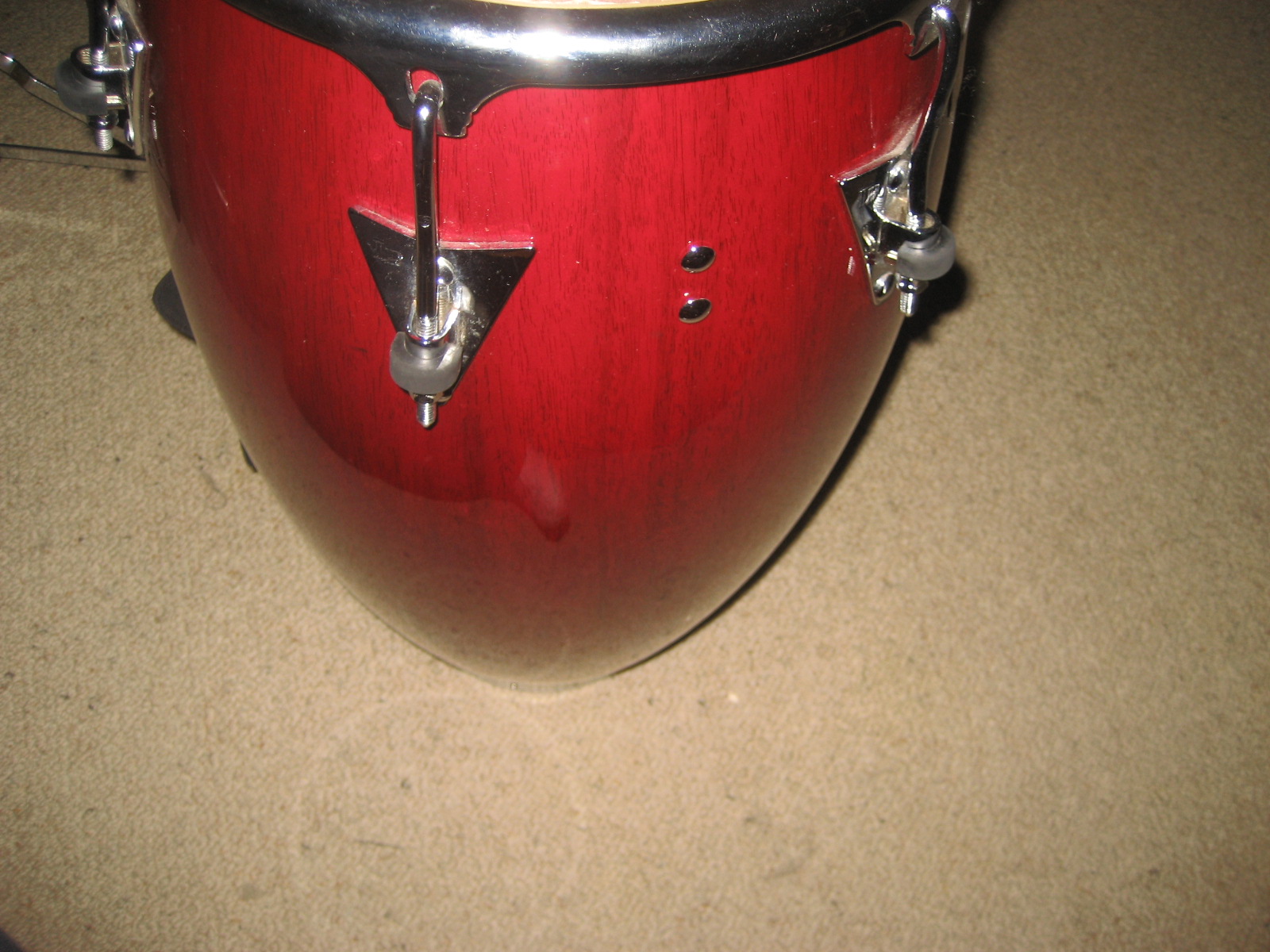 Lower holes are where the LP handle fits in. The 2 closest ones together are where the screws go in for the bracket to attach to the conga stand, the others are for the side plates.