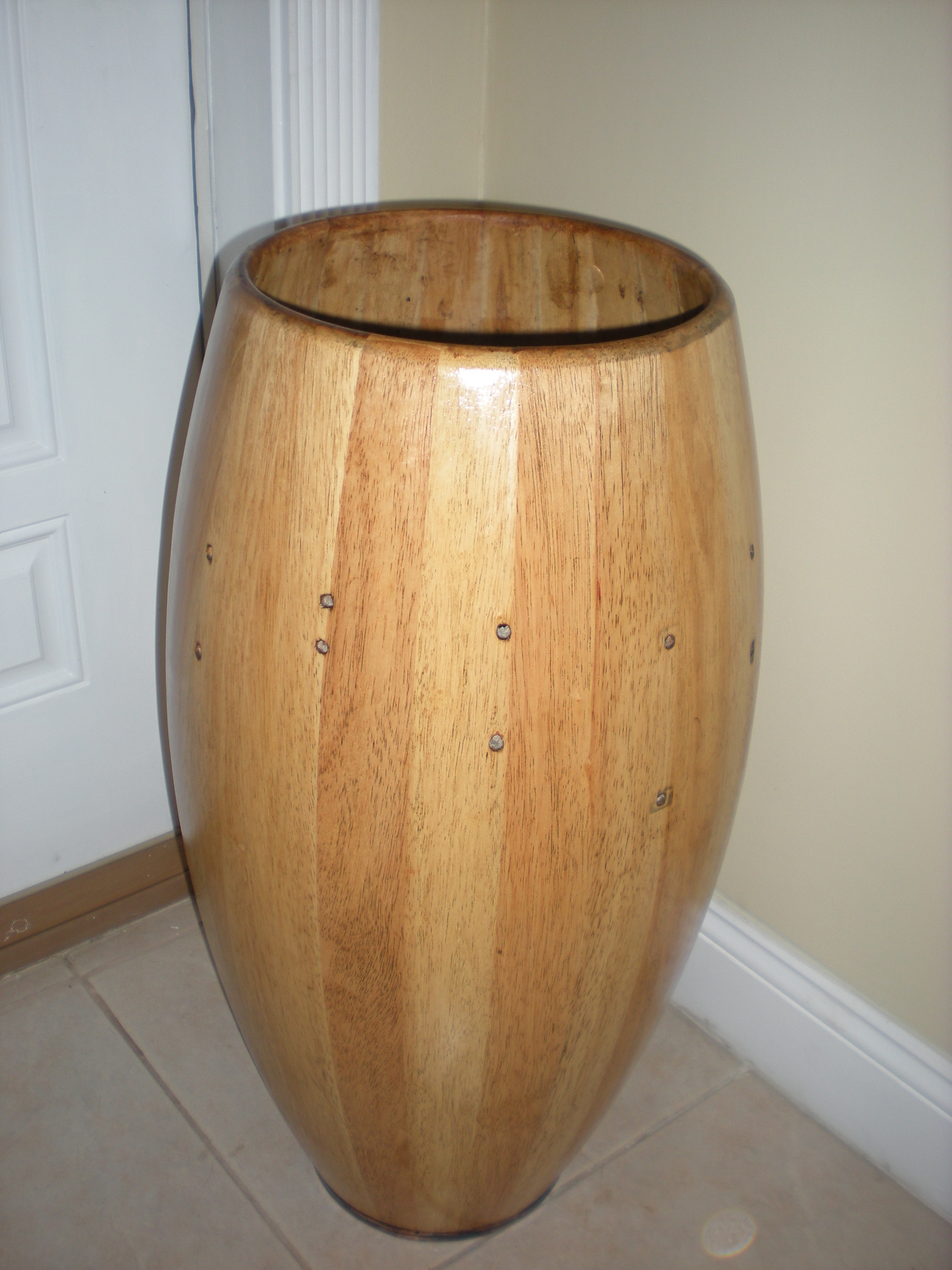 thought i'd post a picture of my project today. I had refinished the congas i got from Omelenko in brown but i decided today that i would return them to a natural finish so here it is.