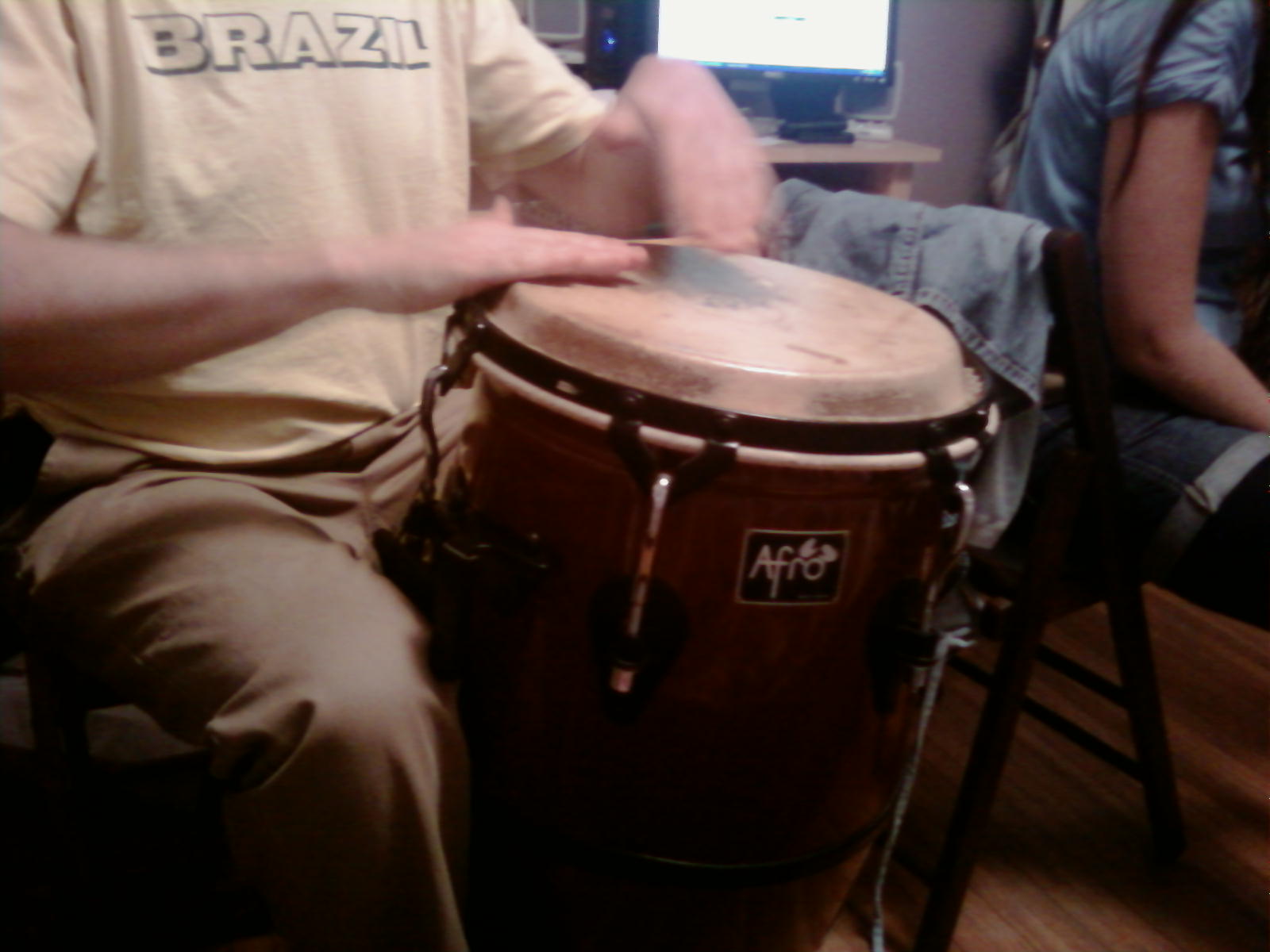 Well, I ended up buying it. see pic below. I paid 120$ for it and it turned out to be a 11 3/4 inch congas as opposed to a quinto. Its fiberglass but like no other fiber drum i've seen. the inside looks like some particle board remo type thing...not like an lp or toca fiber drum. But its a solid drum. will be good for taking some where where i don't care what happens to it...i.e a beater drum. Its a butt ugly color too IMHO, but overall I thing it was a great price. (i saw a old CP quinto in guitar center for 119$...and this Afro conga is by far a better instrument.