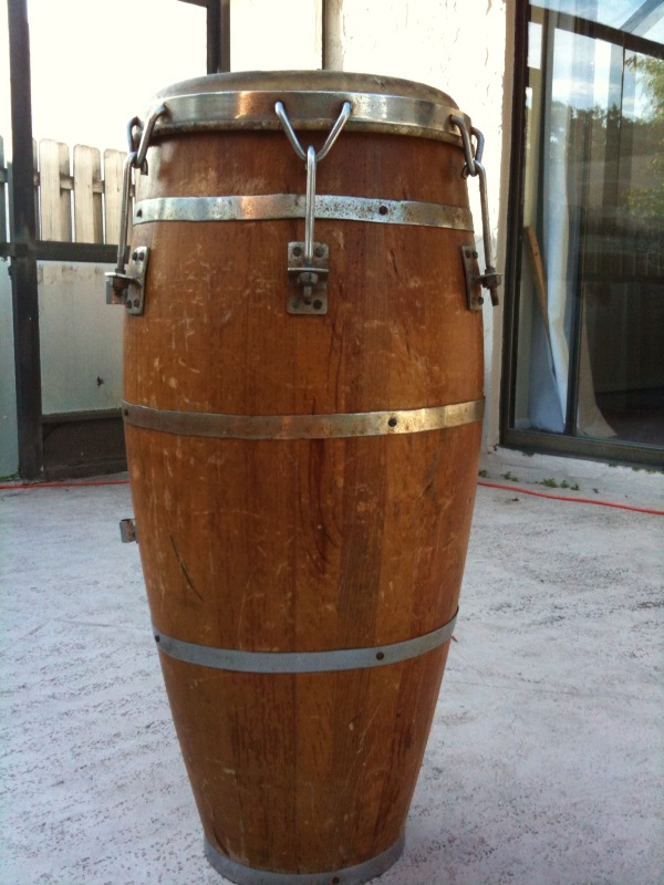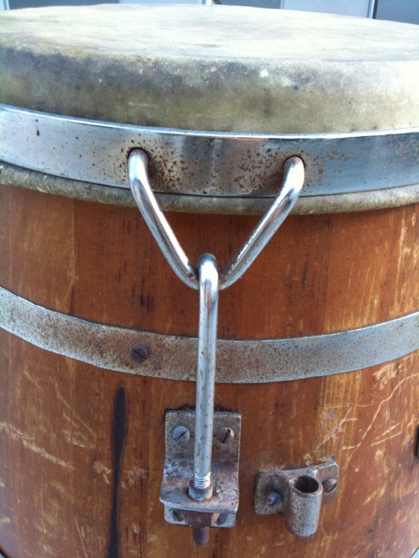 My son lives in Florida and keeps an out for drums that he thinks I may like. He just picked this drum up from a Cuban gentleman who has had it for many years in his garage. He thinks its either Cedro because of its odor, or light colored mahogany (Caoba). He states the finish is flaking off and seems to be lacquer like. To me the crown looks like Sonoc and the side plates also like very early Sonoc but I'm not sure. What do you guys think?