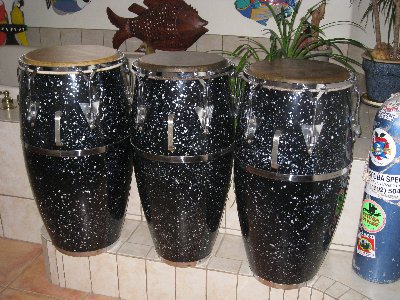 I want to offer the members of congaplace.com first chance at buying this awesome set of drums made in Paisley Park, New Jersey by LP, around the mid 70's. The set is mother of peal fiberglass one of a kind, all new heads which were mounted by Robert Feltcher in San Diego. These drums are in mint shape for the age that they are, they also have the original handles on them. If you are at all interested I'm asking $1200 + shipping (from AZ). Please call if you are interested or have any more questions: (406) 253-6925. See Pics Below!