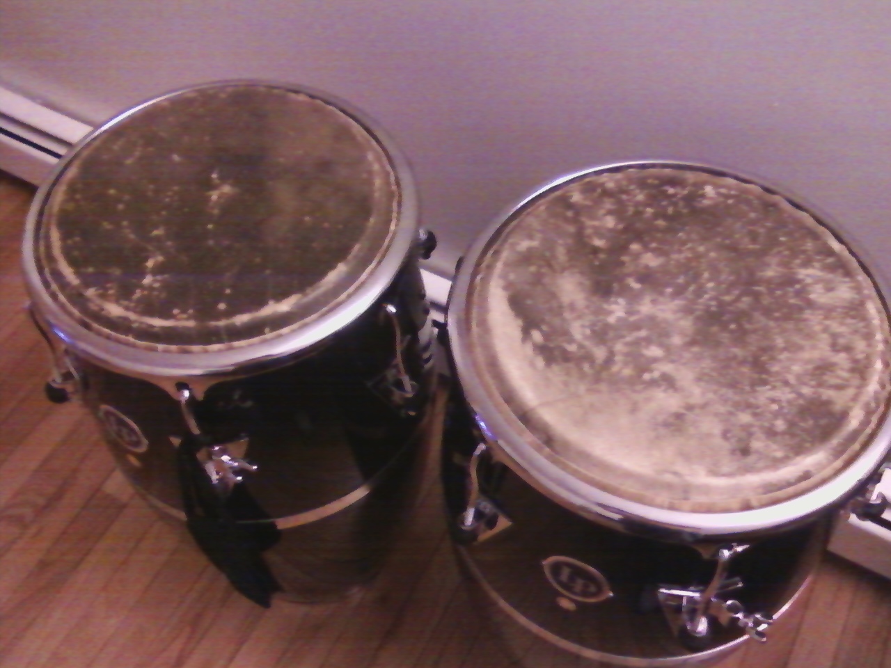 whats up fellas just wanted to post these brand new lp original models , still in boxes i actualy took them out to reskin them , they are brand spanking new , an 11 3/4 tres golpe & 12 1/2 tumba , black with chrome hardware ...