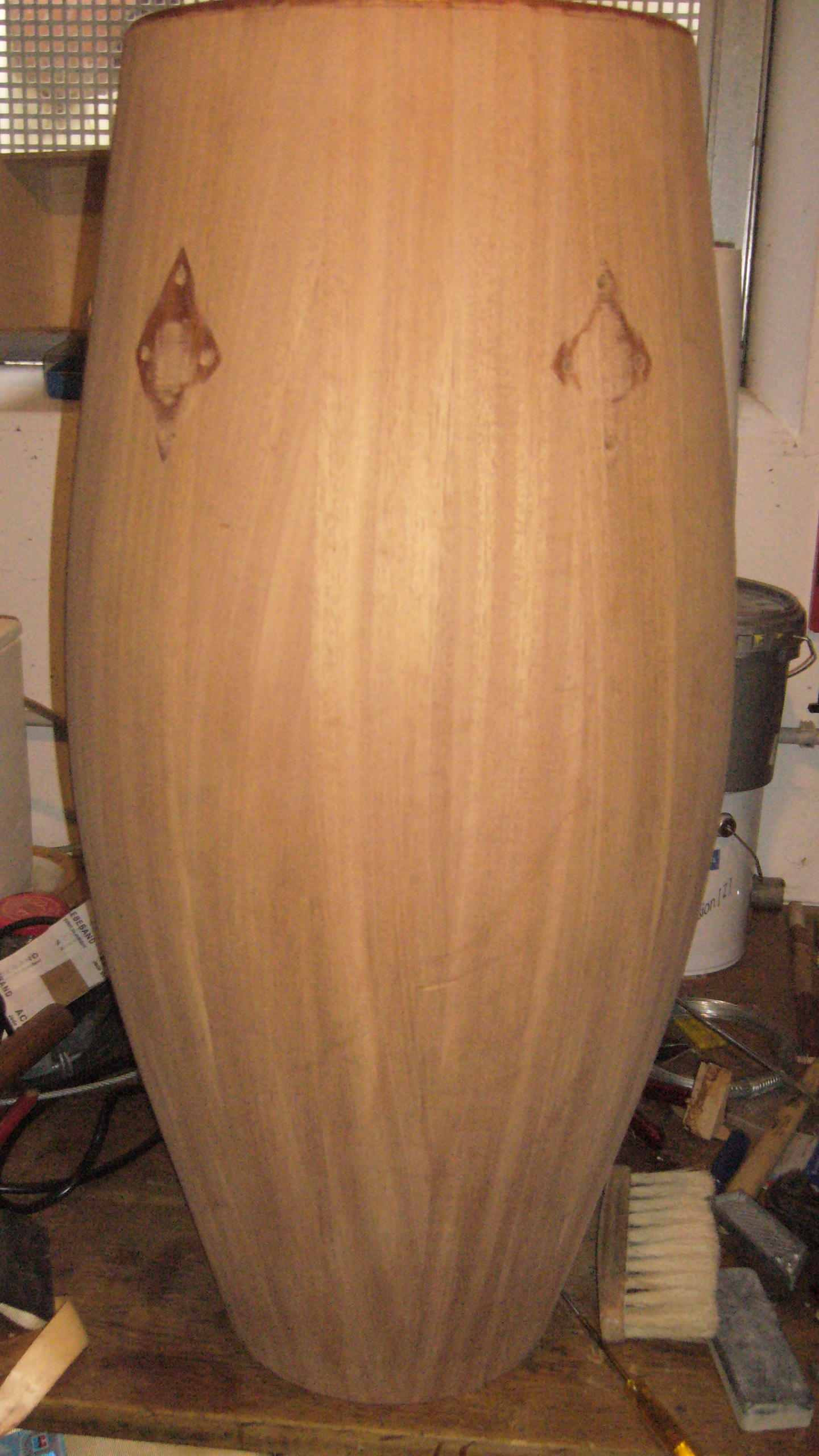 EDIT: I fiberglassed my old Gon Bops, but applied just a very light layer.