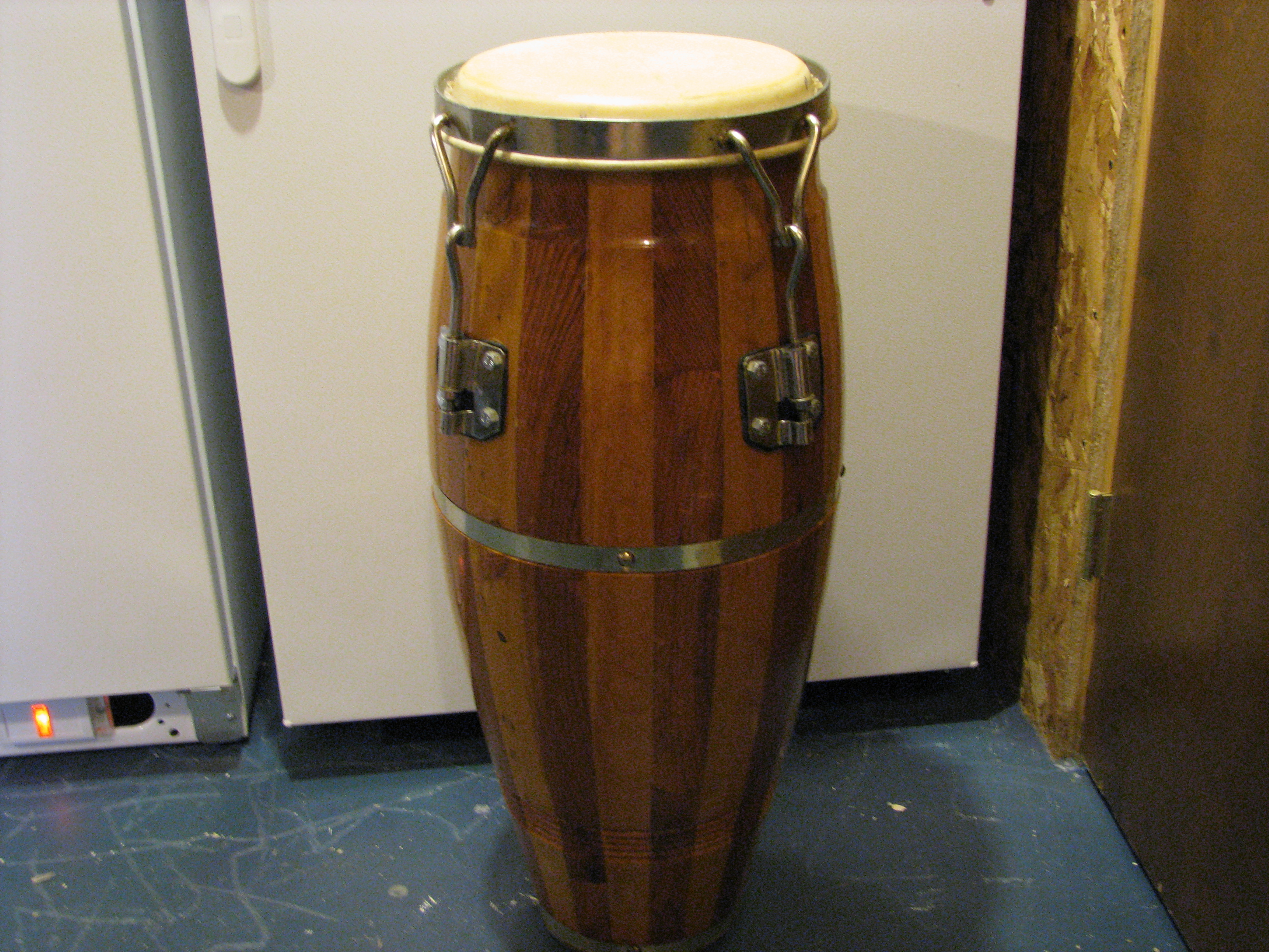 These & other Mexican made congas did not have decent sound edges so they muffled any head mounted to them. They used pre stretched / softened hides from rendering plants that were rotting until placed in water and were over saturated w/ water which broke down the natural fibers, leached out all the natural oils so there was no life in the heads, placed on a dull shell made to LOOK like a conga but never functioned as one. They are a model of how not to build a drum ! They were barely tunable and parts often failed to function. Most owners of these used them as decorative pedestals for flower pots or lighting lamps.