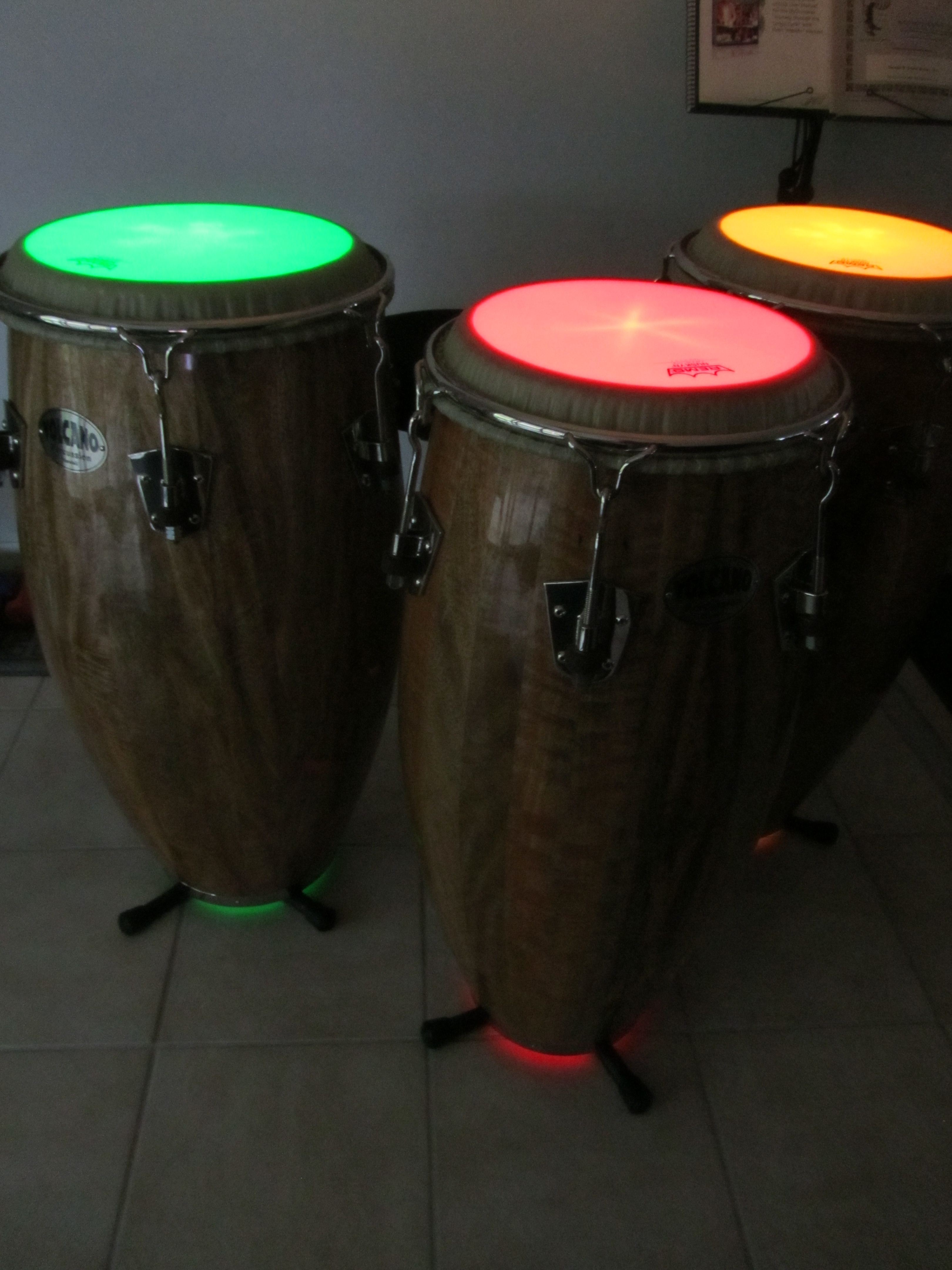The drums do not slip around on these great little stands because of the rubber they are made of. Some times depending on the music, I am also a heavy hitter and they still work great. I thought I could also make them but for what Larry Beck is selling them for I figured my time to make them was worth more than the price he is charging. Larry is a great guy and he will appreciate all the comments for improvements. His design is simple and they work. I really like these little stands and I won't be luging my other stands anymore. I am getting older and my back is not what it was years ago. I am totally pleased with the stands. I have 4 of them and they came with a nice draw string bag. I am glad I could share this info with all the good people here at Congaplace. Enjoy!