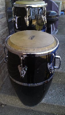Congratulations first of all on your aquisition of some fixer uppers (Matadors), that's always a fun, and sometimes frustrating project. Refinishing is the main challenge, skins on the other hand is a matter of preference. I have several drums that have cow hides, and some that have mule. I also have Pearl Travel Congas (PTCs) which have synthetic heads. As for which one is best, again that's a point of preference, you should play a drum with the selected head you are considering. That is in order for you to "feel", and "hear" what it sounds like. I still have yet to play a synthetic head on a fiberglass drum myself, I'm sure that someone on here will chime in and tell you how that must sound.