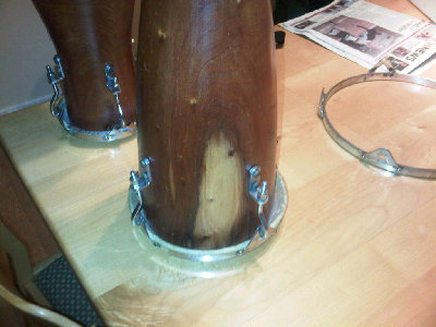 That was my instinct with the drums, I was struck by the solid shell and workworking quality. I noticed that inside the shell, at the very narrowist point, there are a number of very rough cuts that cause wood to protrude with a bunch of shards (best words I can come up with to describe this - you can sort of see it from the pictures. I'm thinking that this is likely intentional and that they act as baffles for the sound or something - any thoughts on this?