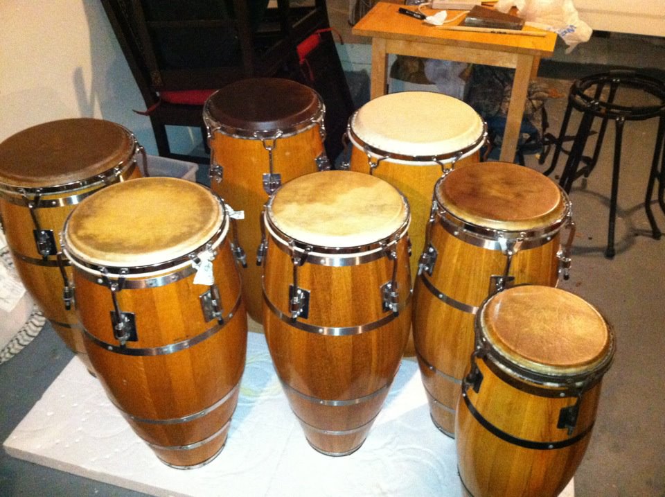 Good call on the SOS Drums. I've had my set for a few years and love them. Here's a pic of my set. 9" Ash Requinto (25" tall), 10" Oak Qunito, 11" Oak Conga, 12" Oak Tumba and 13" Oak Super Tumba.