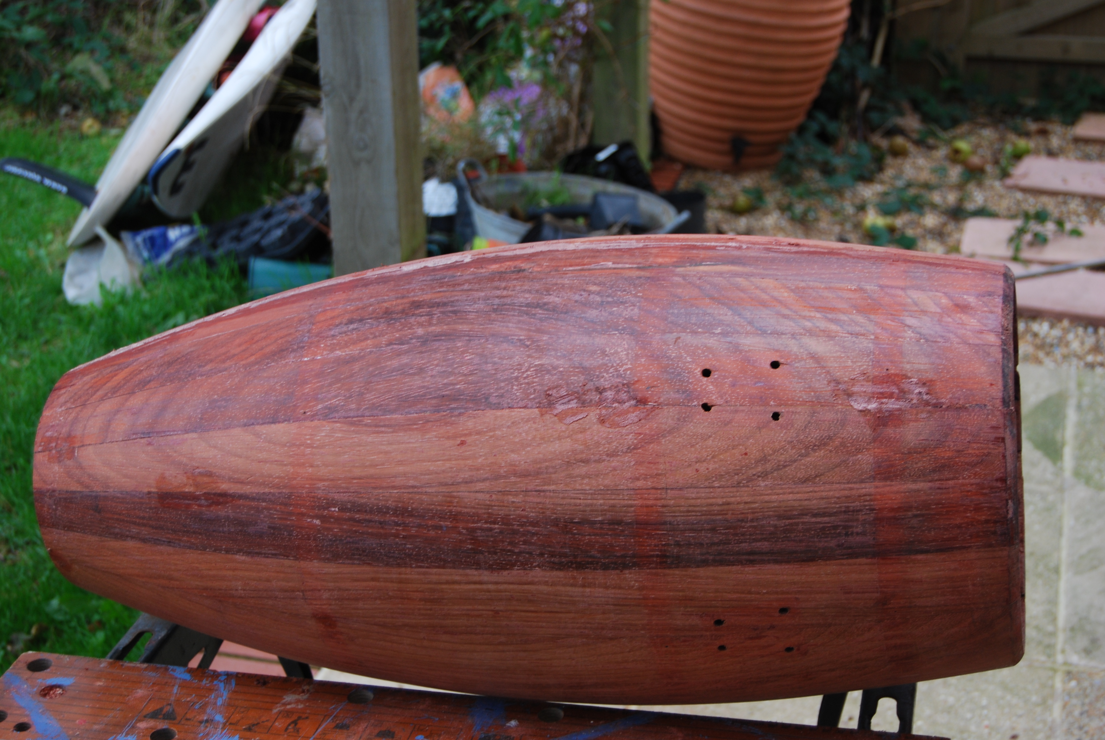 I have Danish Oil finish on my vintage Valjes. It looks very nice and keeps the original color of the wood. It's also very easy to apply. Danish oil does protects the wood from water and it hardens when it dries. The oil get absorbed into the wood itself and is not a surface application. Danish oil does not offer the same protection as urethane and lacquers. Those products are surface applications and are visible on the drum. So it's a trade off, the natural look of oil, which is not really noticeable, or the better protection of urethane or lacquer which is visible to the eye. Here in California oil is enough and my drums have endured hours and hours of outdoor play, in sun, fog and by the beach with an oil finish.