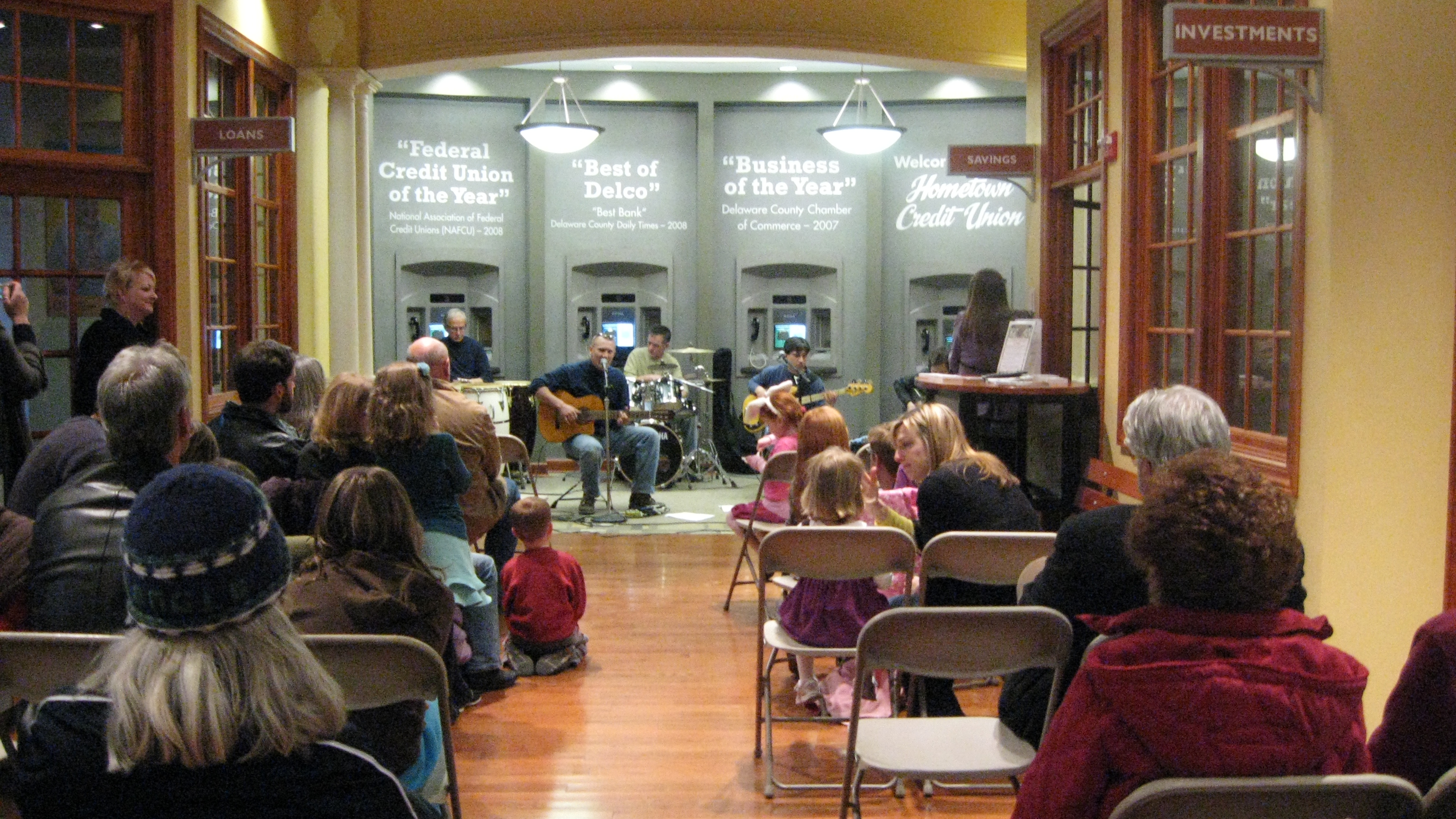 Lobby of credit union, which hosted an afternoon concert during a recent arts and music weekend festival in town outside of Philly.