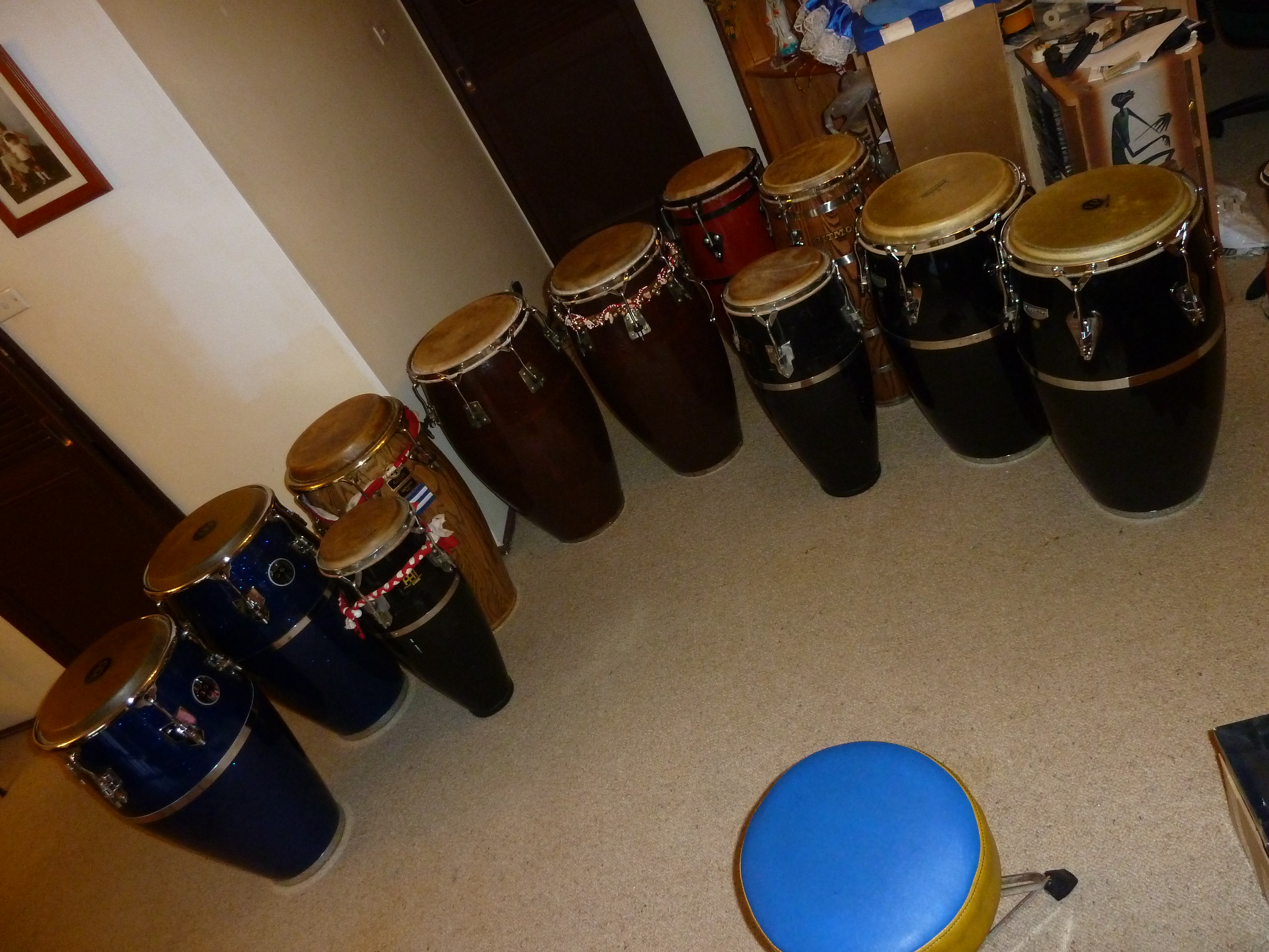 He had the Conga and Tumba still in the box, unopened and with the factory packaging tape and wrapping plastic still in place.