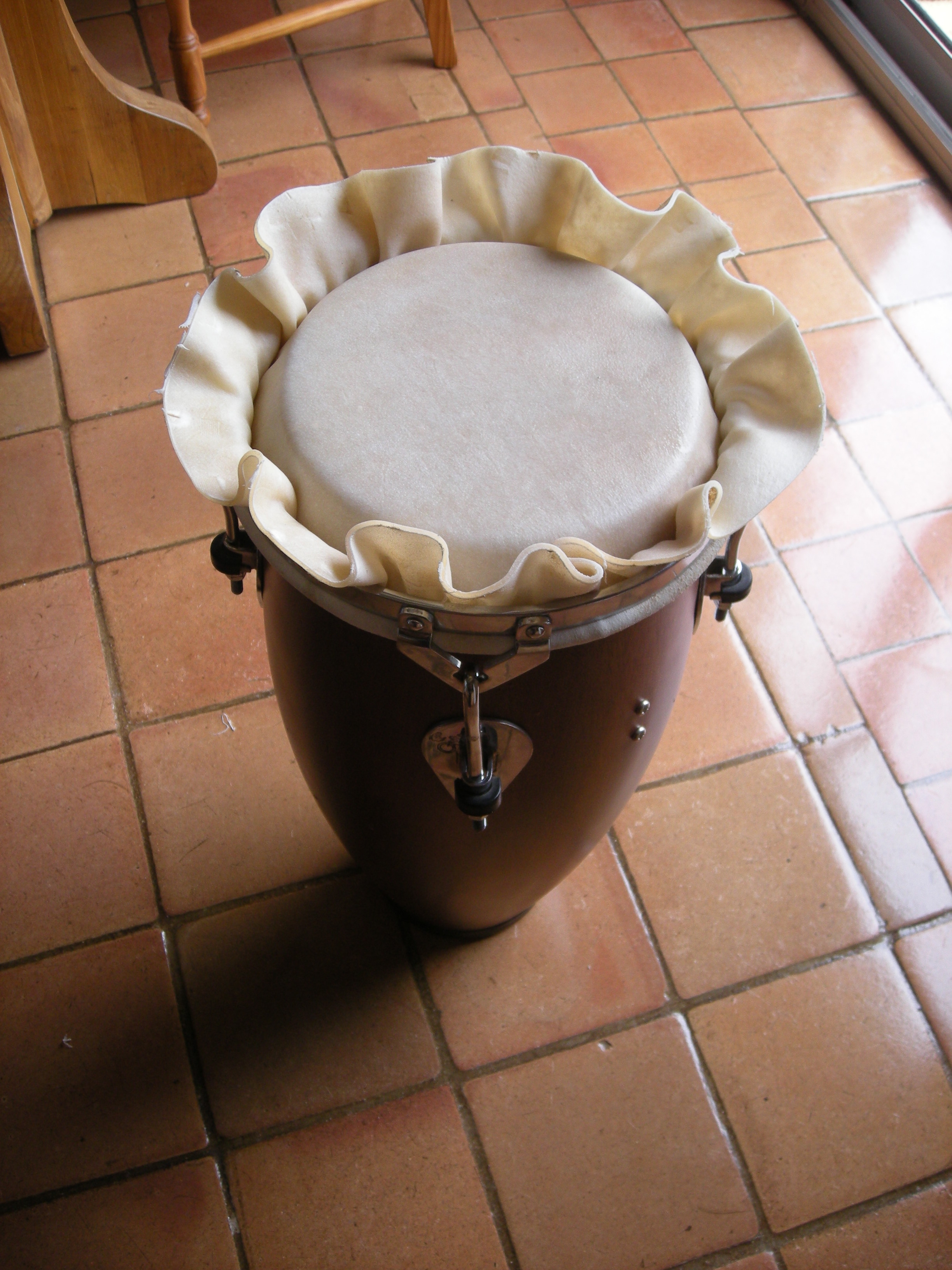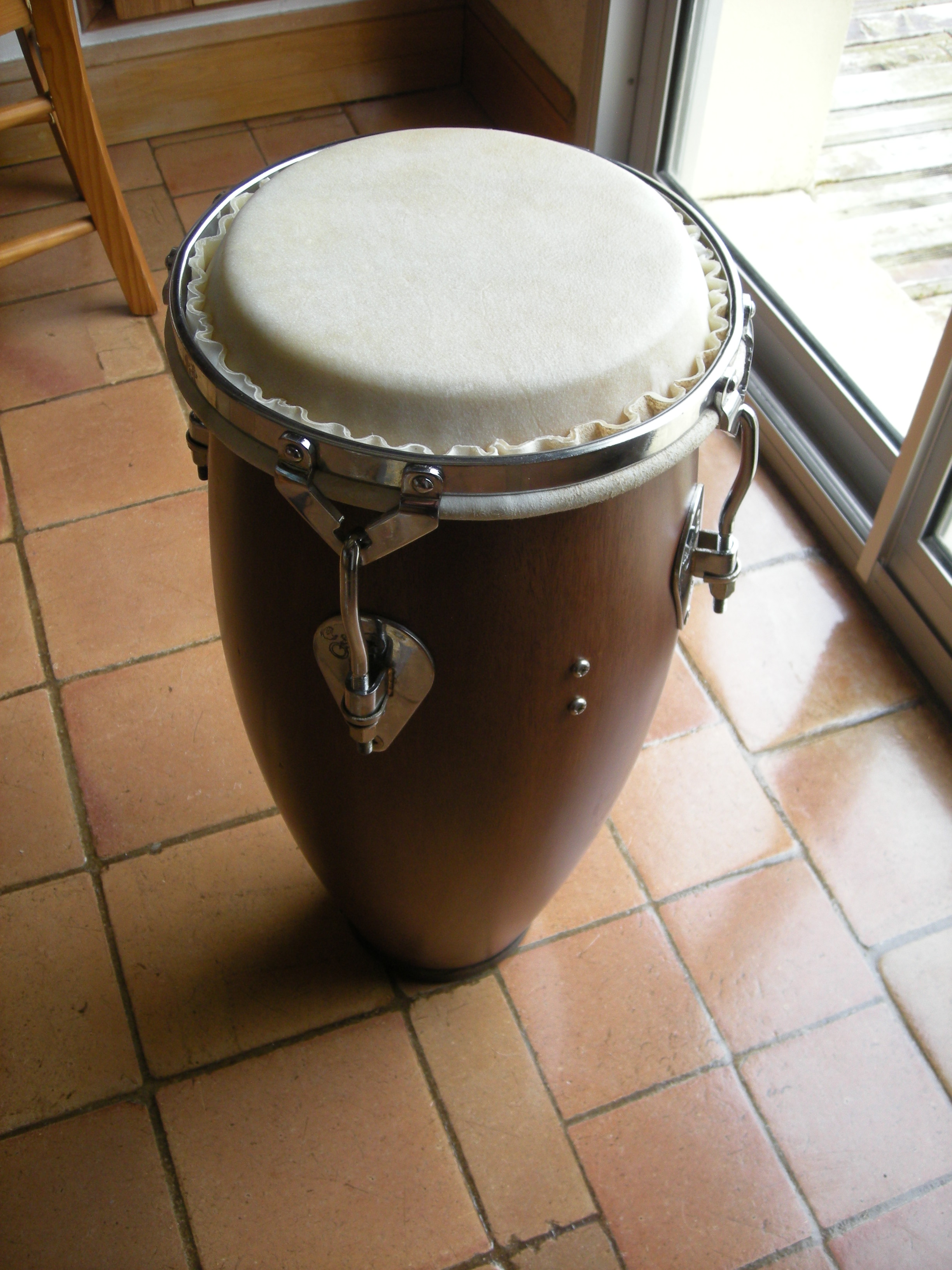 Hello congaplace, This is a mini requinto,from pearl corporation,Afro Percurssion,from the 90's.Solid staves ( probably rubber wood),rubber base for more confort,tradicional rims and 8mm tunning lugs. Is a 8 requinto,very light and solid.I put some top notch skins from Germany(thanks Mike for the tip)from Banux companny.2mm white cow skin.