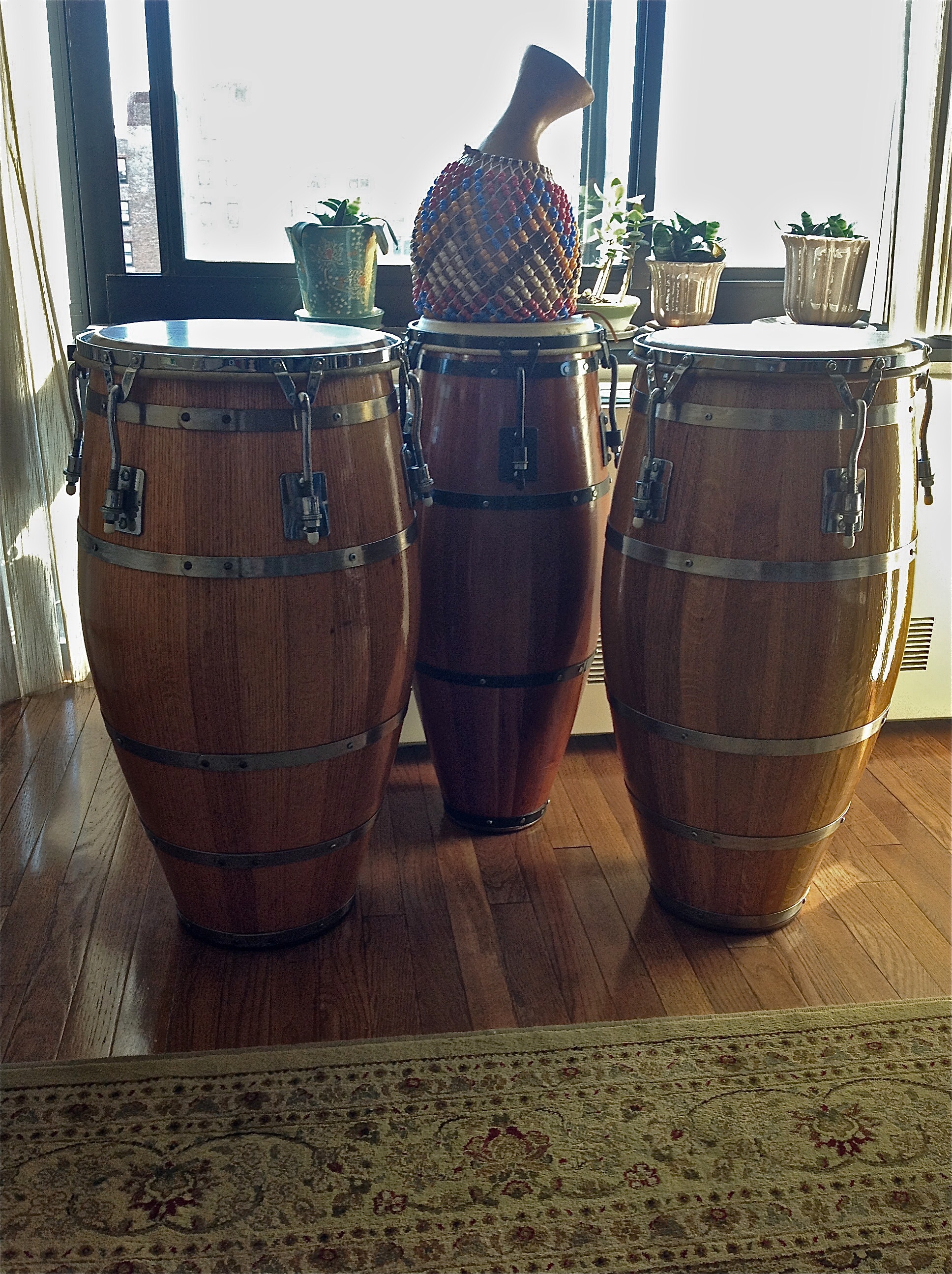 I bought the quinto myself from Jay in the mid 1990's. I bought the tumba and conga this summer from a guy in the Bronx. I know they are oak and dated 1987 but I'm not sure what wood the quinto is. Does anyone know. I think it might be cherry.
