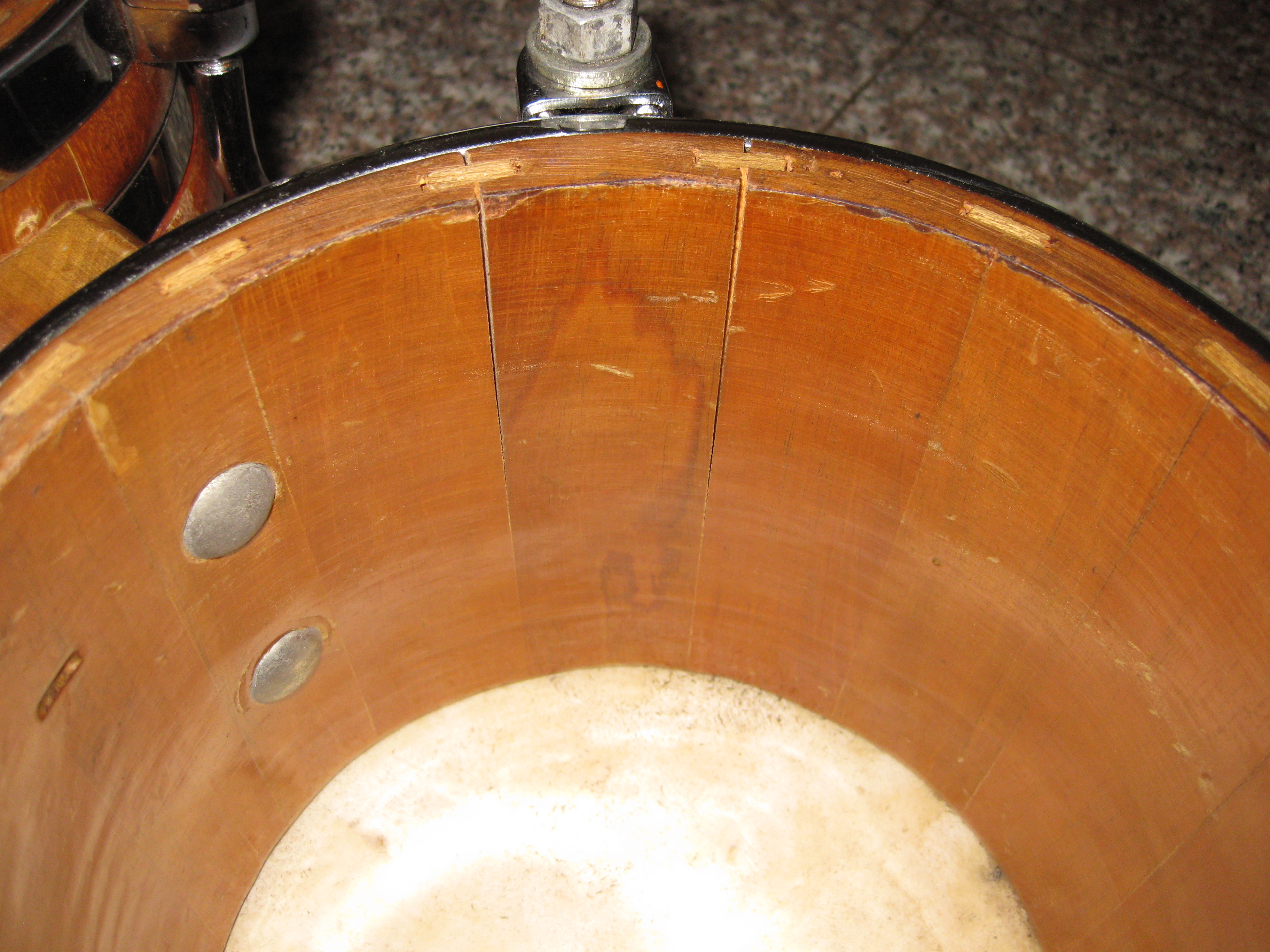 Psych1 wrote:I have an El Piernas, less than 5 years old, that is starting to separate at the staves on both drums.. I don't know about all the others but on mine the thick staves have a top to bottom groove cut in them and a different wood is used to help connect the staves. I assume that is a design to prevent separations but I believe it is what is causing the separations.