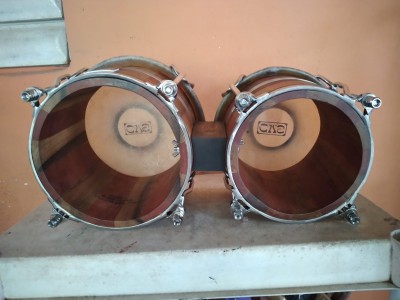 Saludos, Cvs Percussion Bongó by Charlie Vega. Made of Cedar (cedro & Capa prieto) and Salmwood. 7.25 X 8.5 very well made and not heavy at all. Just got it today so I have not play it yet. The only thing I did was to rub a little conditioner onto the skins and let it set for the night.