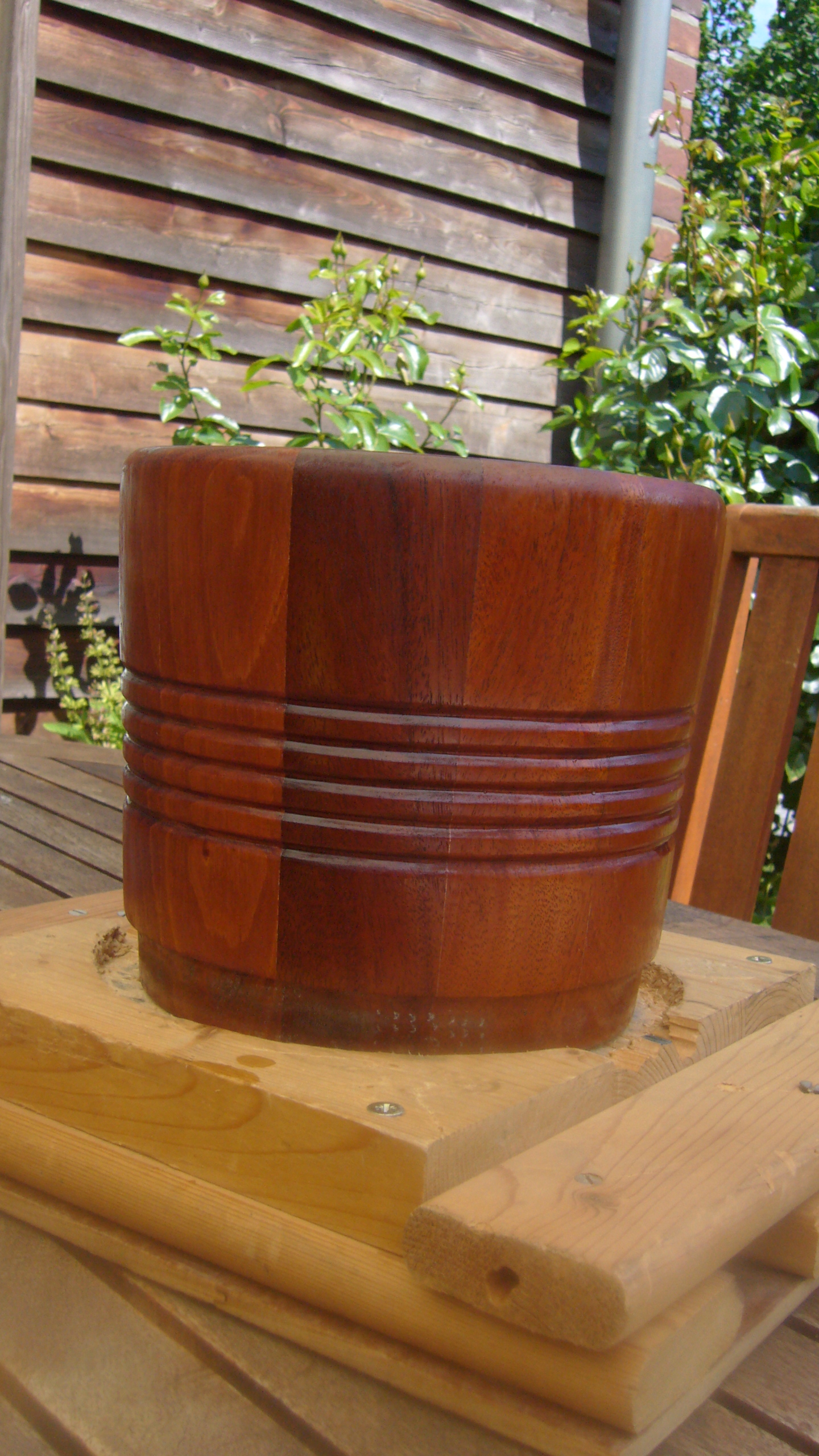 What is plastic wood? Some wood filler I presume. Too late: I have closed the remaining small openings that I could not get any tighter with a mixture of glue and the mahogany dust of the sanding process. As soon as this self-made filler has dried and the shell is sanded, I am about to apply the first layer of lacquer.