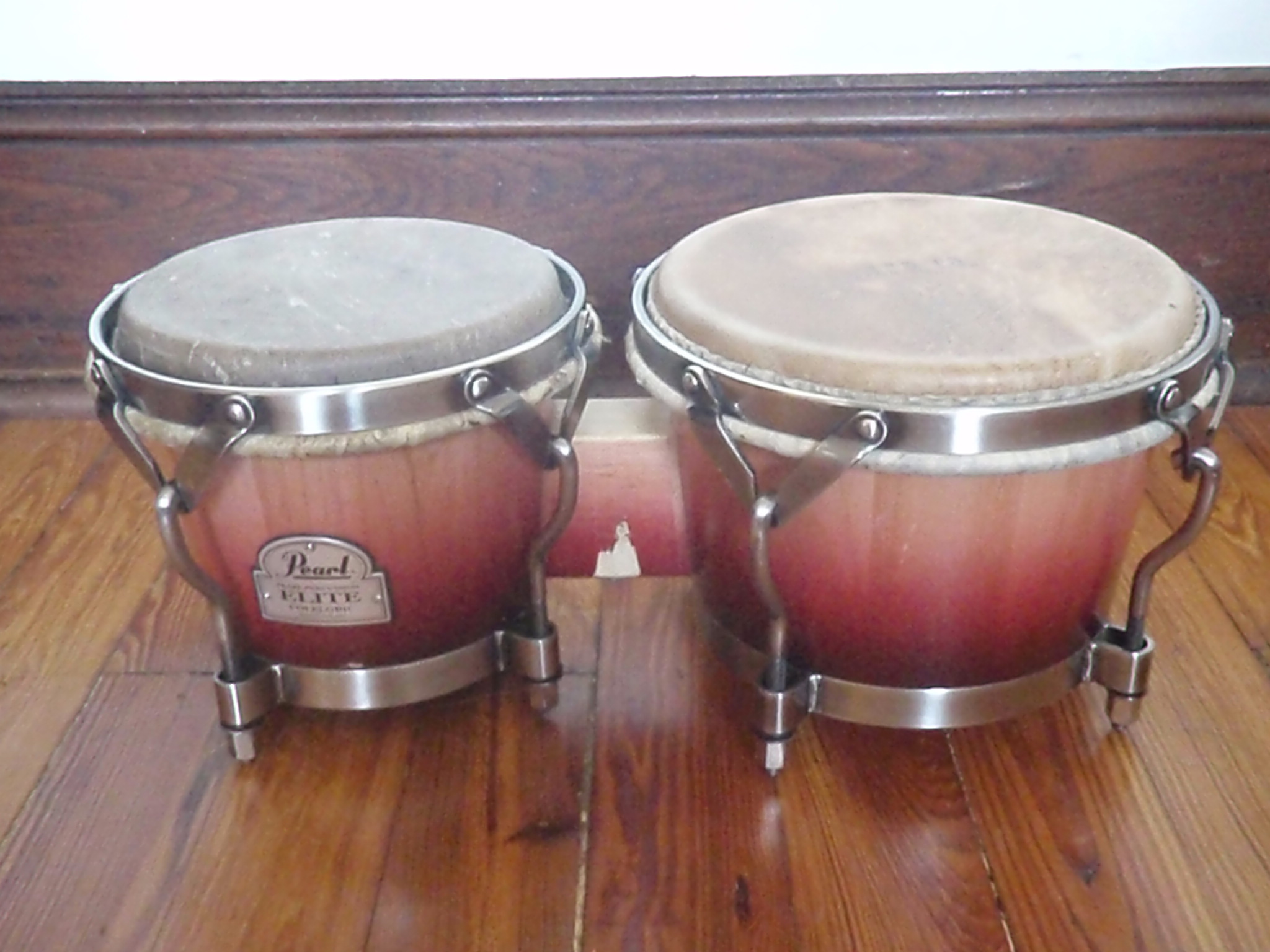 I picked mine up used on ebay last thanksgiving and at first was not impressed.  The stock heads sounded dead, although they were fairly free from overtones.  I am not so sure that what Pearl has to say about the heads on their folkloric series being "Venezuelan-style cow" is accurate.  I swapped in a set of goat skin heads (also off of  ebay) the seller said had come off a set of Caribbean Rhythms "Oak Jammin Bongos", and the sonic difference was night and day.   Lively, melodic, and loud.  My drums were now more folkloric looking and sounding.  Wetting the goat skins to prepare them was a real task, though -- they smelled like a barnyard.  Later I swapped the hembra out for  a JCR cow skin.  This is my preferred set- up and it added some needed thump to the overall sound.  I sometimes play these along with a Vintage King quinto and they sound made for each other.  More of a dry "folkloric" tone between all that fiberglass than any of my siam oak congas.