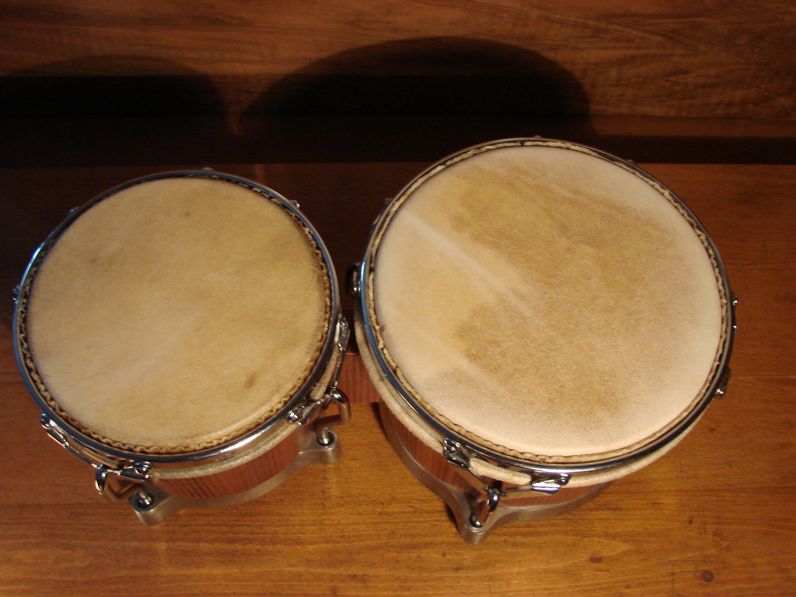 As I mentioned, the skins on them are cow and the difference in sound, compared to the young Bull skins I have on my Meinl set was striking. These are lighter in sound and feeling as well as playing response. For lack of a better term, they sound like what I recognize as an authentic Cuban Son, Bongo sound. Also, the hard wood and the facetted inside shells may play a part as well.They sounded a bit strange at first and I thought I made a misstake in the skin choices. Both Bull skins on my Meinls are 1mm so I went with 1mm for the macho here and 1,2mm for the Hembra. But, it's a diffrent gender/animal; live and learn and I've been learning a lot lately regarding drum skins.