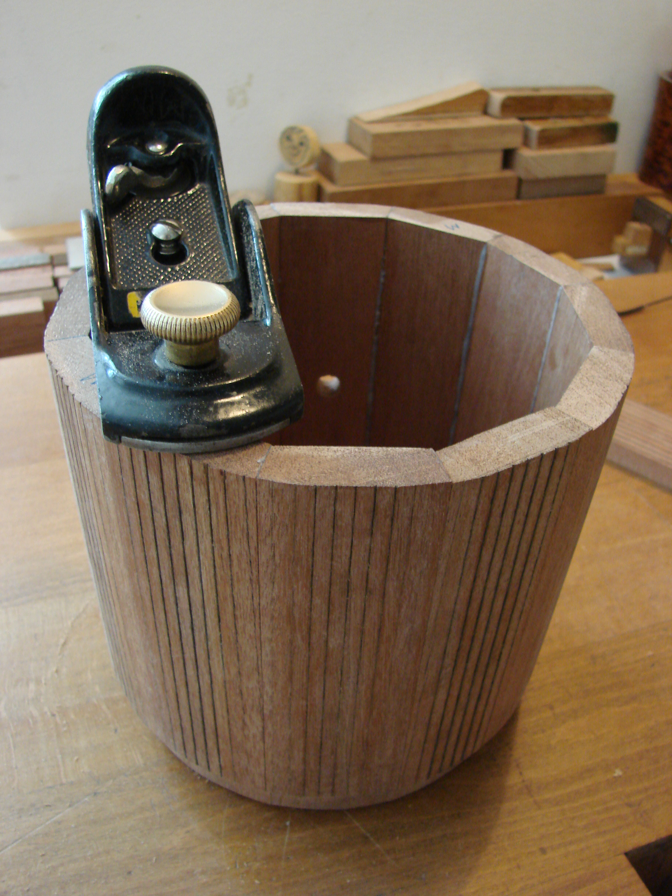 Building Bongos, Flattening top of shell with Block Plane.JPG
